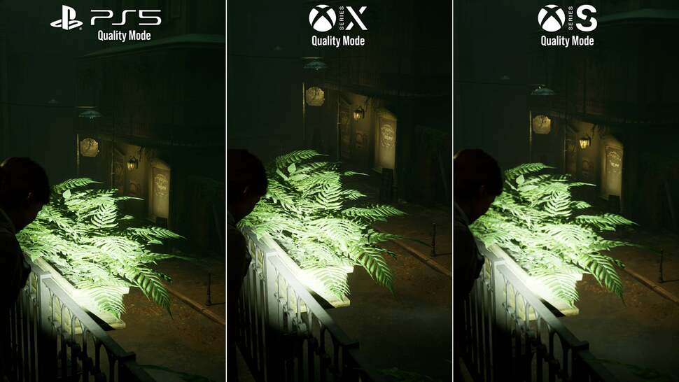 The main point is that textures drop in quality. On character faces, clothing, or the paintings strewn across the manor, most run with lower definition assets - which isn't flattering viewed up close. Ambient occlusion shading is also degraded on Series S, as are volumetric effects. In general though, it's the texture quality and 900p resolution that stick out most. Also frustratingly, all HUD elements - icons, text and so on - run at 1080p on Series S, creating a rough, aliased result.