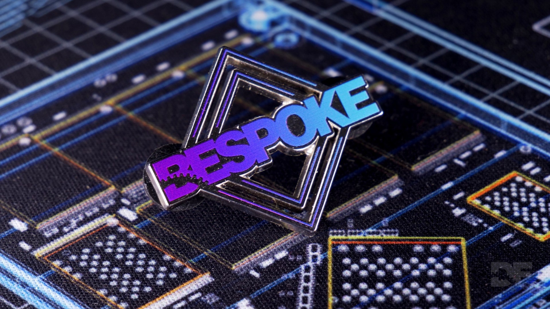 As well as the long-rumoured Bespoke tee, which comes in a double-sided blue/purple gradient design on a black shirt, you can also pick up a nifty metal pin (pictured above). Finally, the Bespoke Collection also includes a sticker pack, with a DF Approved seal of quality, a DF Retro PVM design and two #stutterstruggle frame-time graphs - including one blank design to chart your very own traversal or shader compilation stutters.