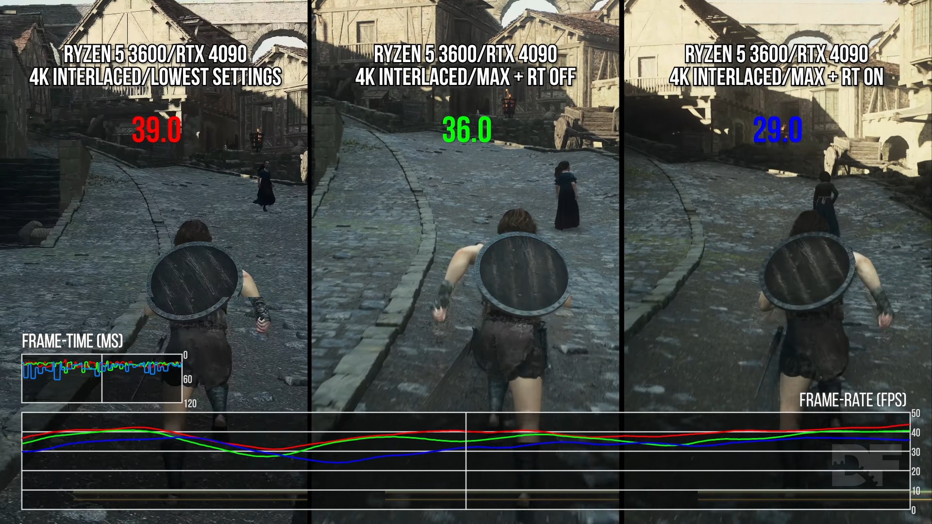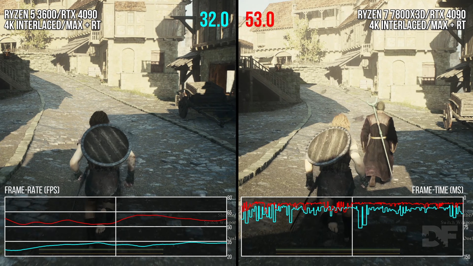 On a more entry-level CPU, like the Ryzen 5 3600, performance is significantly worse, perhaps even unplayably poor in some areas. Here, performance is nearer 30fps in our ad hoc city benchmark, compared to around 60fps on the 7800X3D - not great when you consider we're running a top-of-the-line RTX 4090 at 4K interlaced with max settings, including ray tracing. For context, running the same sequence on Xbox Series X results in even worse performance, with around a 10 percent lower frame-rate on average than the Ryzen 5 3600 and the same generally erratic frame times, while using settings that are significantly below max on PC. Interestingly, CPU performance scales with resolution, with 4K being 10 percent slower than 1080p even when CPU-limited. This is somewhat uncommon, but we have seen similar results in the past games like Crysis Remastered.