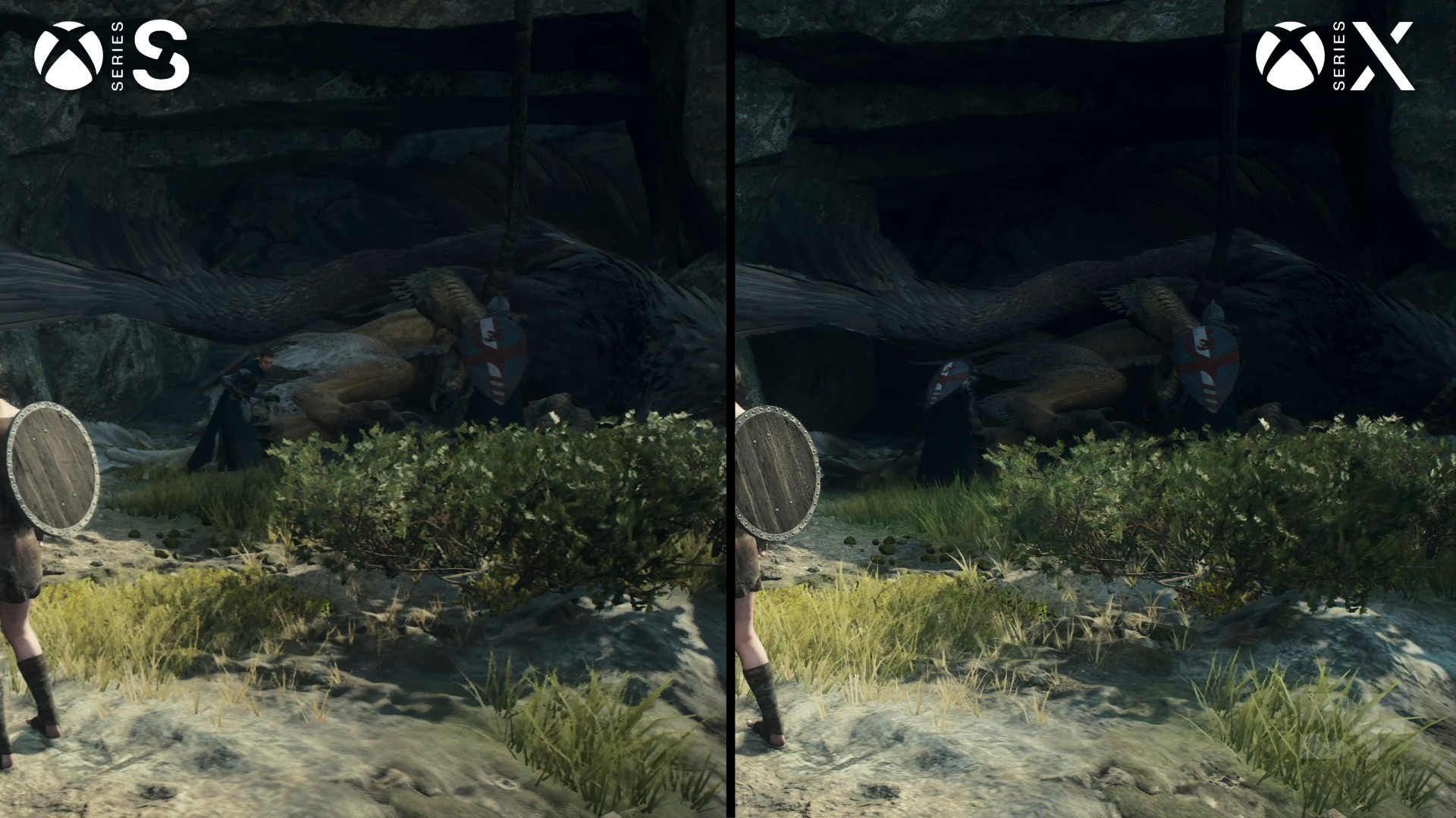 The Xbox Series S version of Dragon's Dogma 2 isn't really a close match for the other console versions of the game as RTGI is stripped out, downgrading the visuals significantly. Series S does at least have ambient occlusion and some kind of non-RT global illumination, but it feels more like a last-gen experience on Microsoft's smaller console. Other cuts are also problematic, with reductions to shadow resolution resulting in distracting flicker and artefacting.