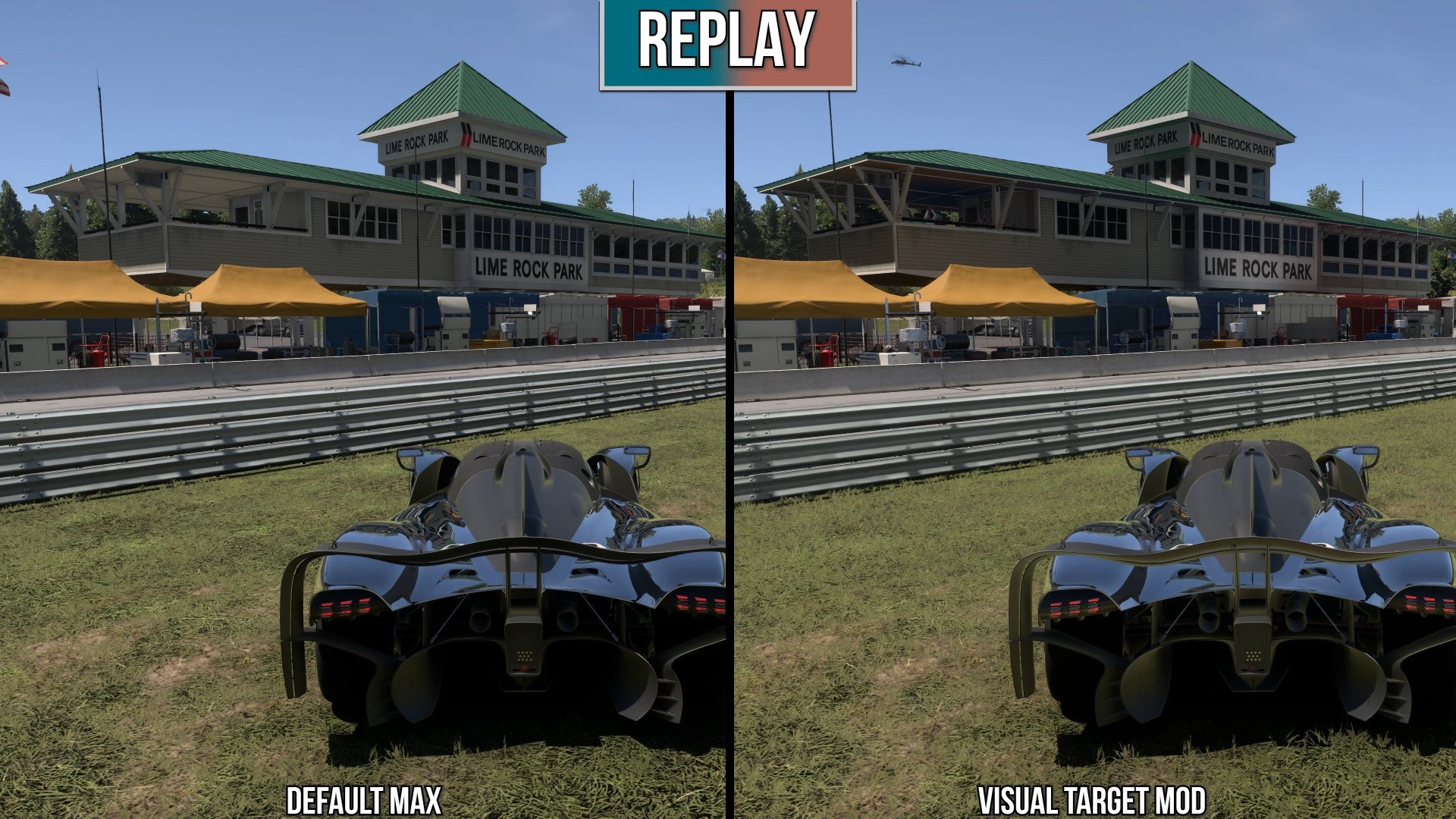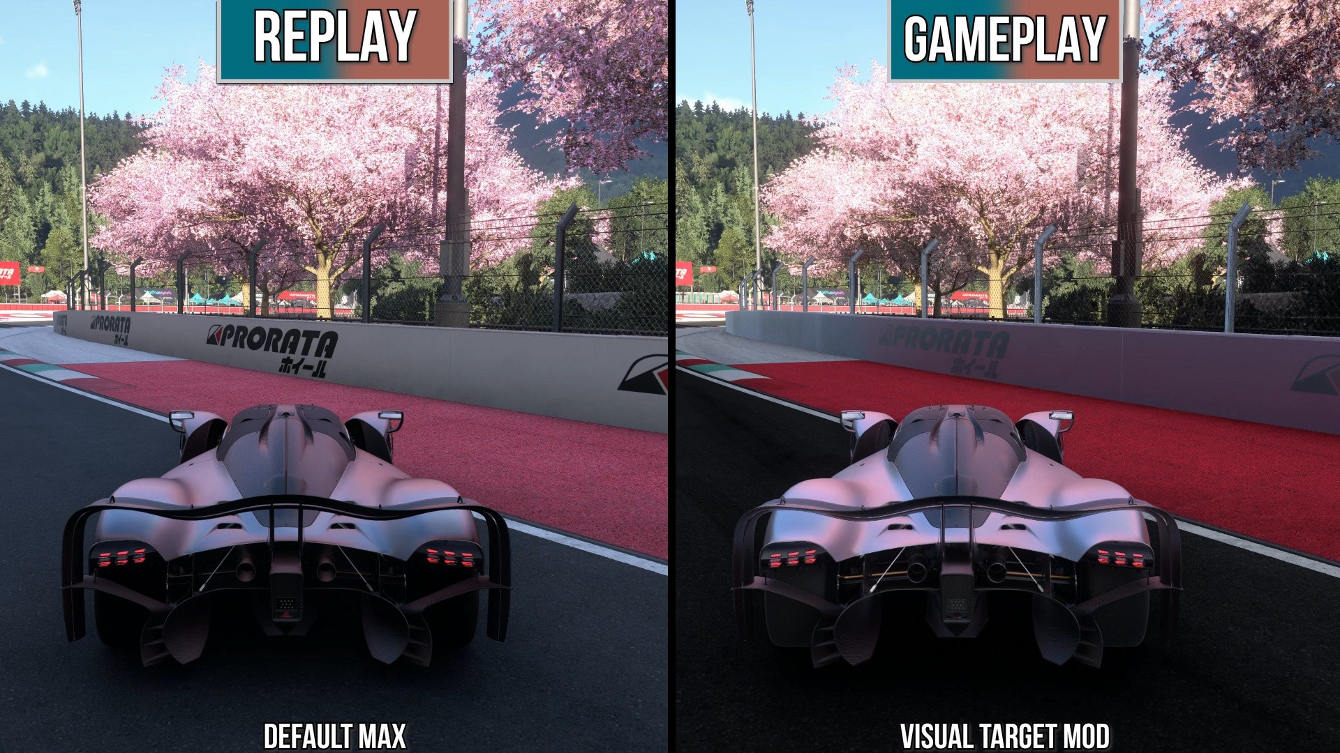 Engaging the mod turns out to be stupendously easy. Simply turn everything to max settings on PC, then visit the c:\XboxGames\Forza Motorsport\Content\Media\PCFamily\RenderScenerios folder on the Xbox version or the c:\Program Files\Steam\SteamApps\Common\Forza Motorsport\Content\Media\PCFamily\RenderScenerios folder on Steam. Here, you'll discover folders for each visual preset… along with a curious 'Visual Target' folder. And it's there that you'll discover a big bunch of XML files to upgrade the visual quality of the game. Copy those XML files into the 'Ultra' folder, overwriting what's there and you're good to go.