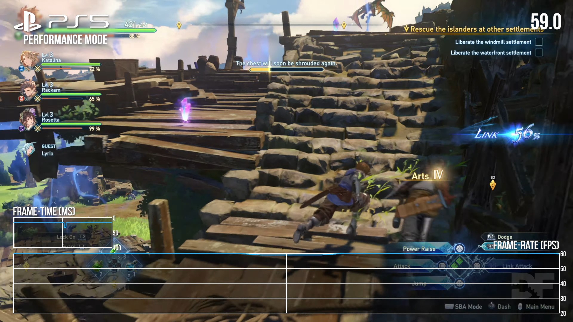 Frame-rates in the performance mode are nearly impeccable. Here, the game runs at a nearly locked 60fps, throughout all gameplay and cutscenes. I did note a couple of minor exceptions - a few moments where the game can drop a frame or two during some open-world traversal - but Relink sticks to a 60fps update almost all of the time and it feels smooth and satisfying as a result.