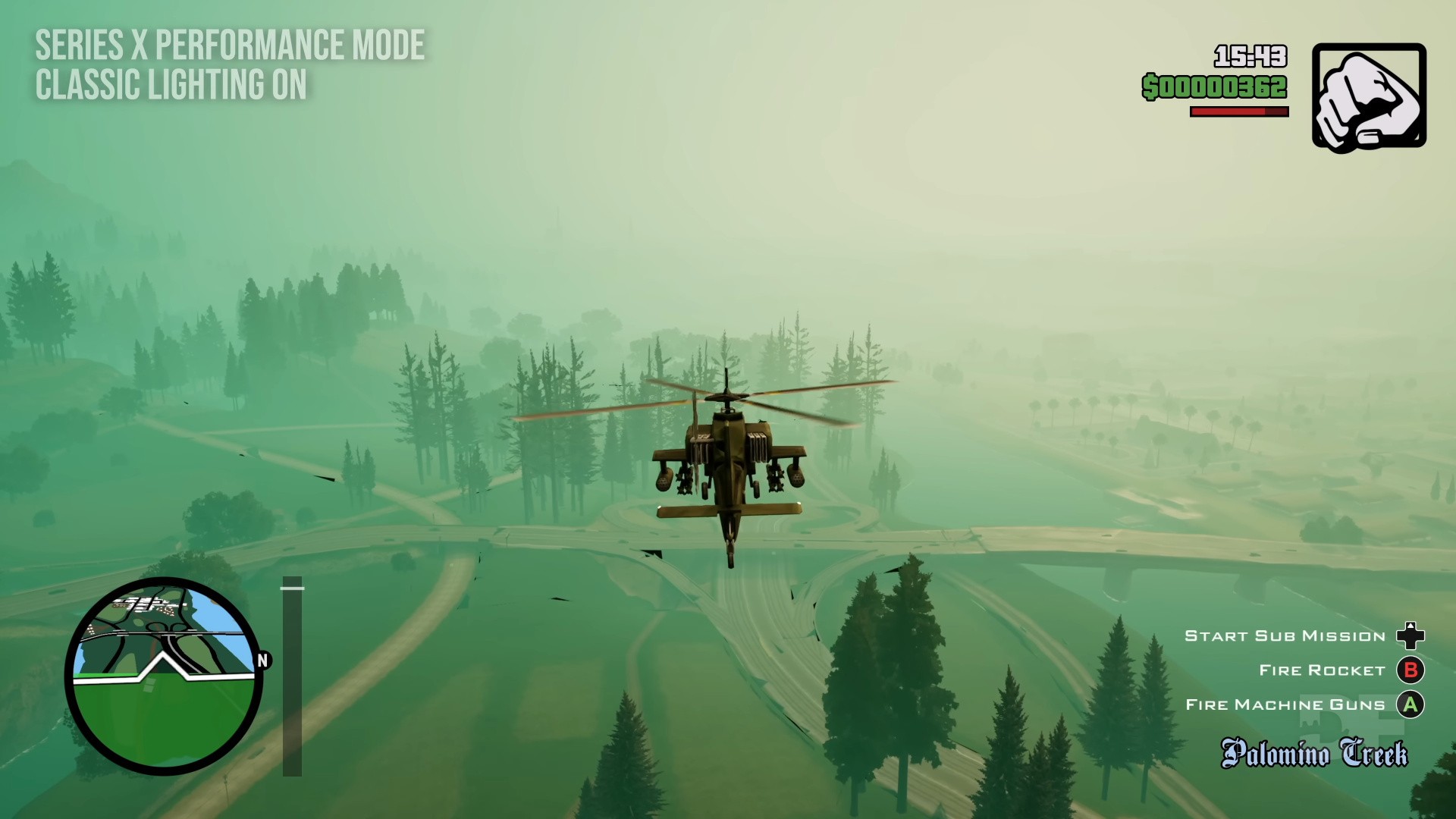 San Andreas' original lighting wasn't exactly realistic, but it was designed to evoke a certain oppressive feel, to hide the limitations of PS2 hardware and to create the impression of a large scale. That last element is especially critical, because game environments are typically a lot smaller than the kinds of landscapes we're used to seeing in the real world, so you need those lighting effects to create a greater impression of distance. When you turn on the regular lighting setup and strip away the ground haze effect, San Andreas can actually look pretty small. The classic lighting setup definitely helps here quite a bit.