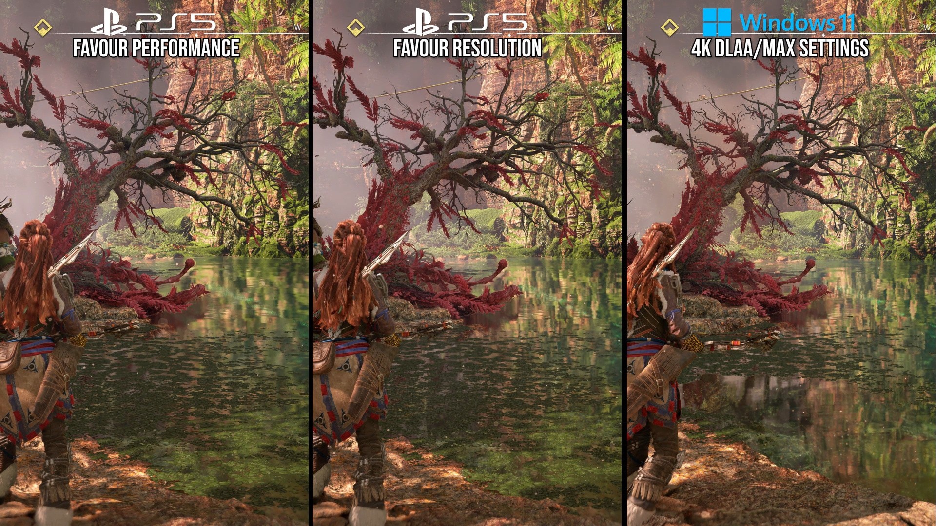 However, image quality is a different matter, thanks to better PC options in terms of effective resolution and anti-aliasing - especially when compared to PS5's performance mode, which uses both checkerboard rendering and a dynamic resolution to target 1800p. However, this solution is quite a downgrade against native 1800p and, in general, the console version is less clear and stable than the same resolution on PC. Indeed, native 1440p or 1440p DLSS resolves more detail than PS5's performance mode. With that in mind, users can tap into higher-quality upscaling in combination with the PC version's dynamic resolution system and achieve great results.