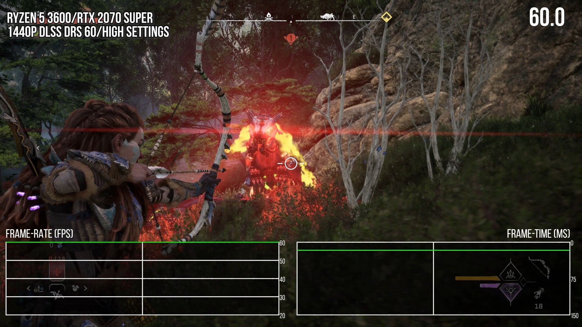 The specs say that an RTX 3070 can achieve 1440p at 60fps at high settings - but even in the game's opening areas, you're actually in the 50s. That's fine for VRR displays of course, but only with dynamic resolution scaling (which is engaged by default) do you get closer to a sustained 60fps. Of course, the console version is using DRS too - and checkerboard rendering - to hit its own 60fps target. It works there quite well and I highly recommend using it on PC too to maximise performance and graphical quality.