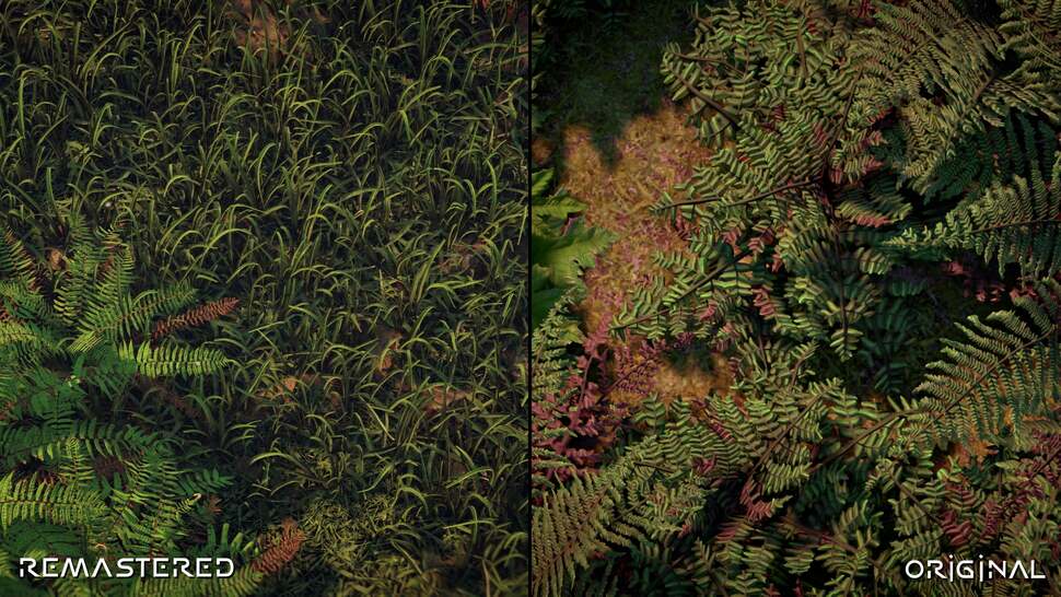 But really, it's all about the visual and features makeover. Firstly, the entire suite of next-generation materials has been deployed from Forbidden West but often tweaked to better work within this new game. For example, Nixxes has replaced the terrain system, the foliage and so much more - that much is obvious from a cursory comparison. However, if you stop and look much closer at individual assets, the boost in quality is more evident. There is an increase in the number of unique plants and in their actual quality. Everything around you appears more detailed, falling roughly in line with Forbidden West. It's interesting to see - the team went through and seems to have closely matched the types of foliage expected in each biome but used completely revamped assets that look a lot better overall.
