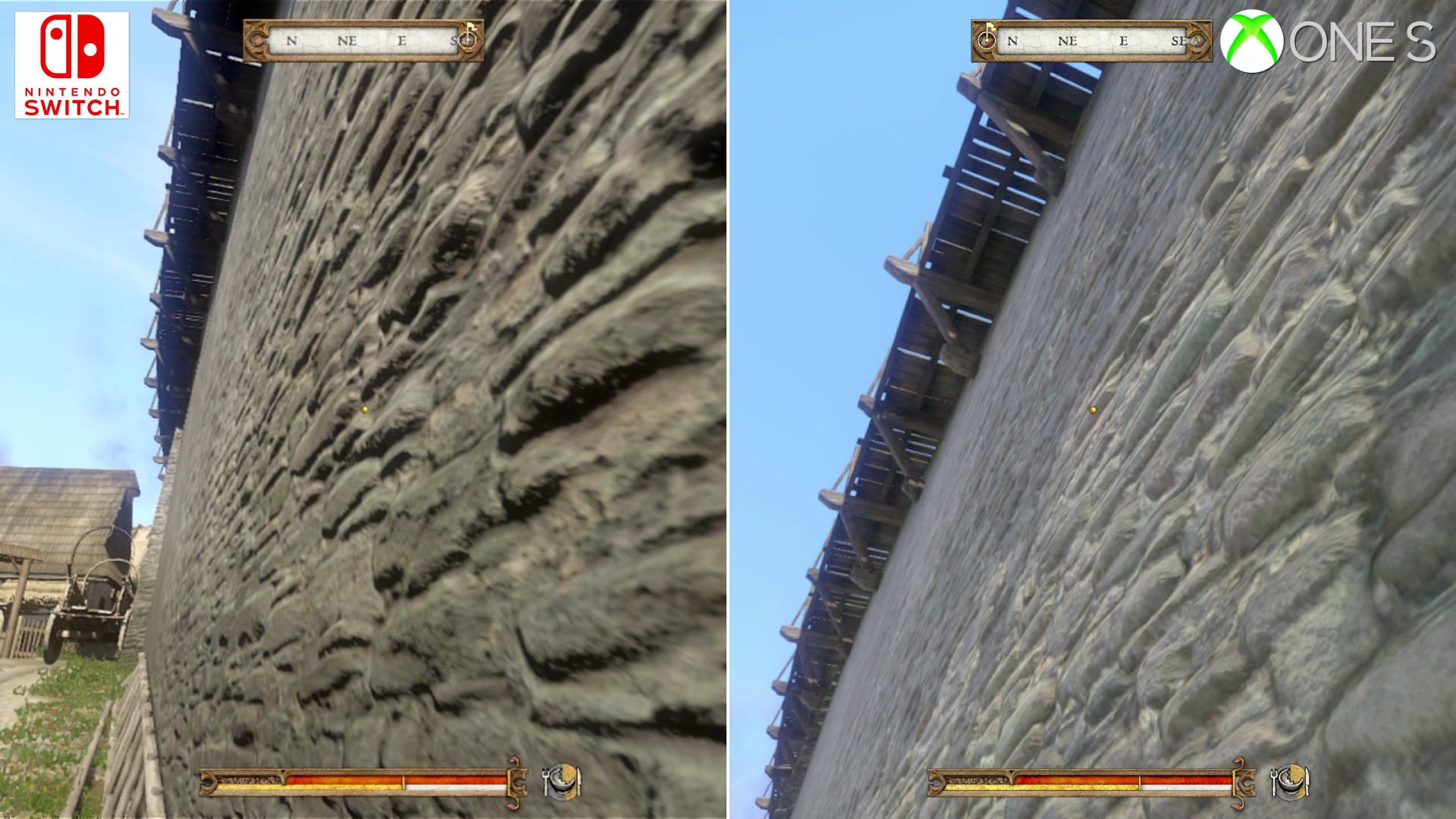Sticking to the positives, the Switch release packs in as many CryEngine features as possible. There's full use of SSR - screen-space reflections - across large water bodies, plus water simulation. Honestly, SSR could so easily have been removed in the process of optimising for a 30fps, and yet it makes the grade. Next up, we have POM - parallax occlusion mapping - on Switch. In short, this adds 3D height and depth to floors, to rocks, mud tracks, and the formation on castle walls. The absolute best POM setting is reserved for PC, though Switch still gets a high quality implementation - at least on par with - or better than Xbox One.