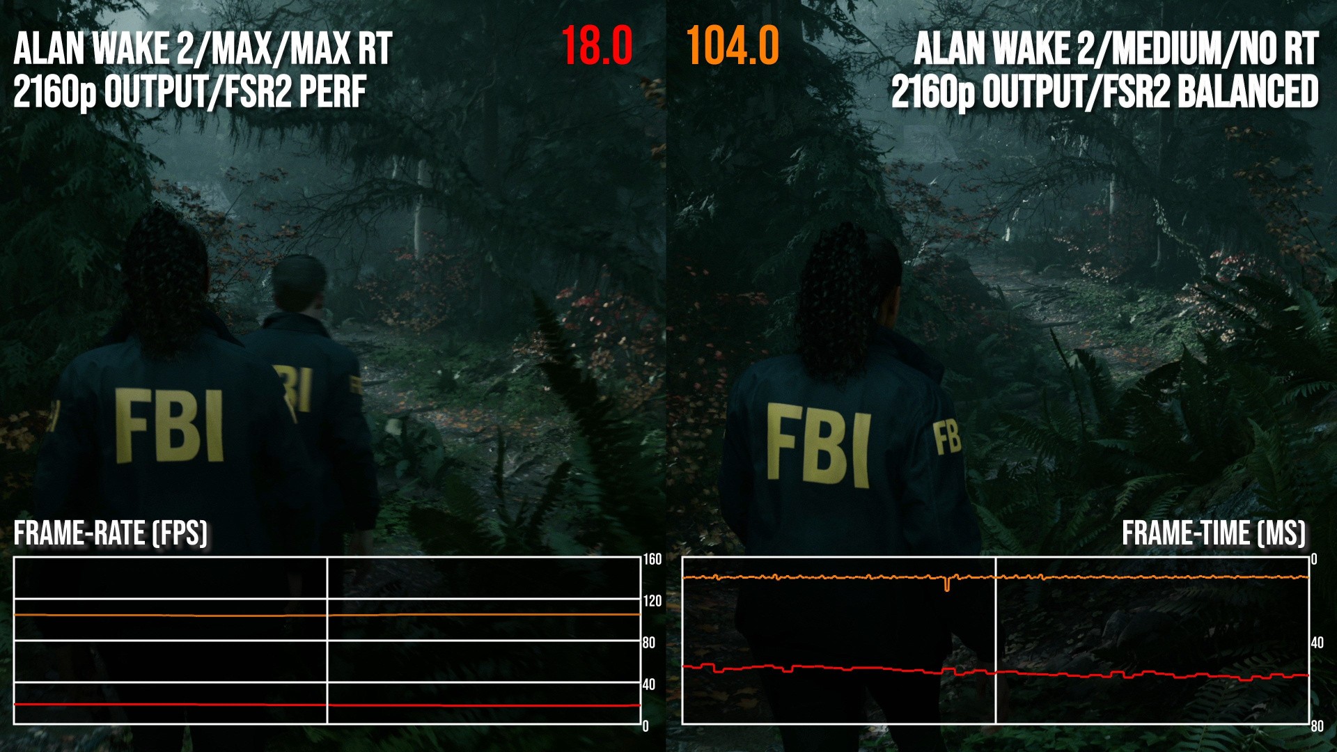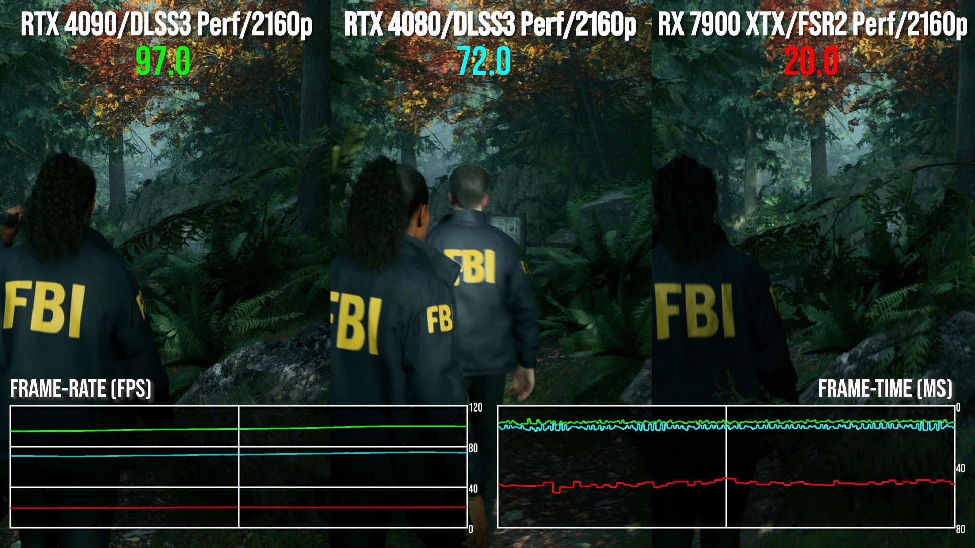 There's one more thing I'd like to point out though. We can't ignore that reaching a certain performance threshold makes more experiences viable, especially at 4K resolution, and that may be worth paying the premium. Path-traced Alan Wake and Cyberpunk 2077 are doing things that the RX 7900 XTX never will. It's that simple. DLSS spatial upscaling, DLSS 3 frame generation temporal upscaling, DLSS ray reconstruction - they're combining to make special things happen.