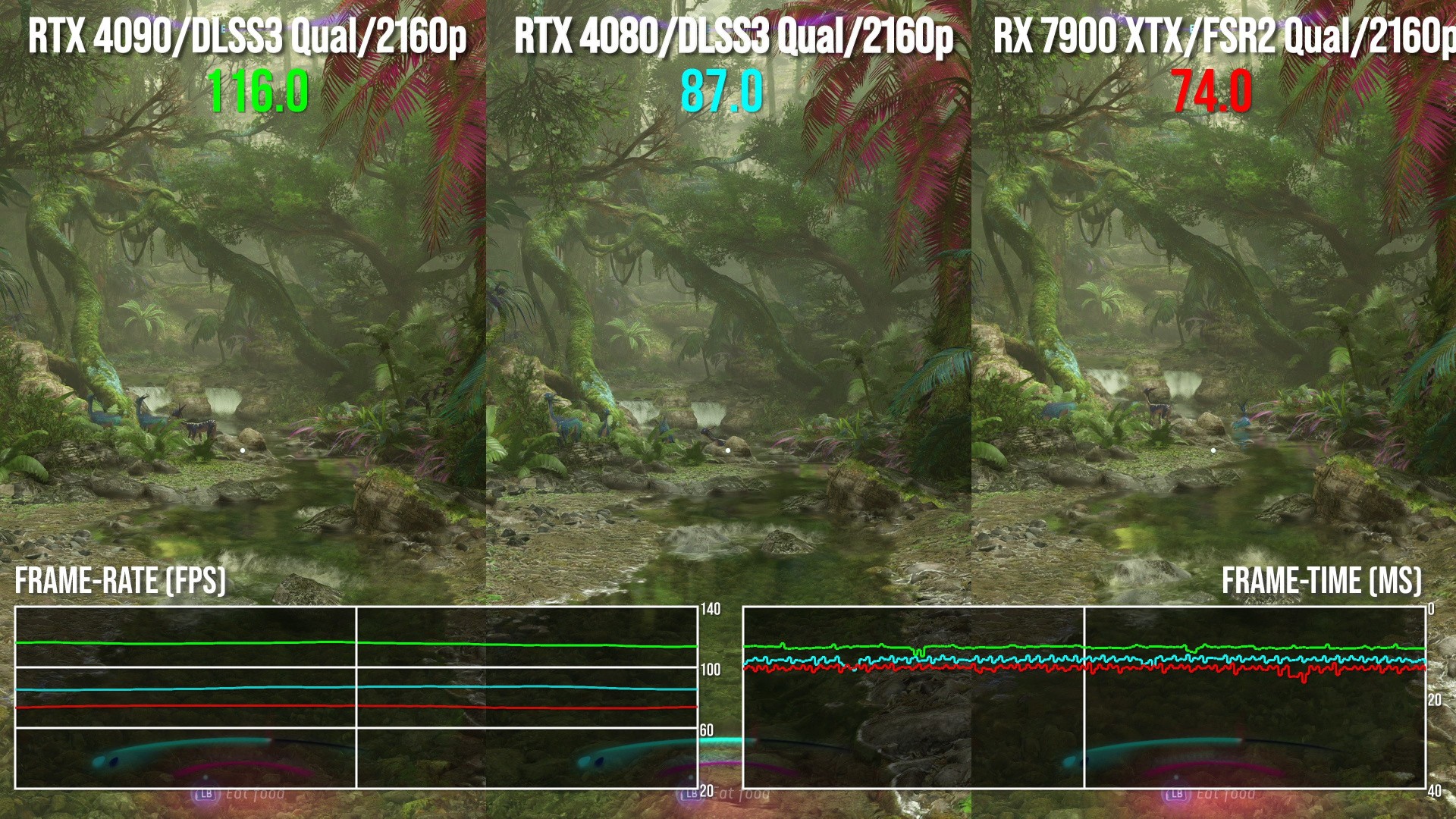 Ultimately, I can't help but think that if you're 'dropping' a grand on a new GPU, you should have access to top-tier experiences at 4K resolution. AMD's value is clear and present, but I think this is all worth taking into consideration. In the gallery above, you'll note that even on a top-tier AMD sponsored game - Avatar: Frontiers of Pandora - the RTX 4080 Super is ahead of the RX 7900 XTX and DLSS quality mode is delivering improved image quality over its FSR2 equivalent.