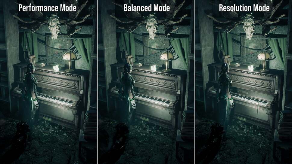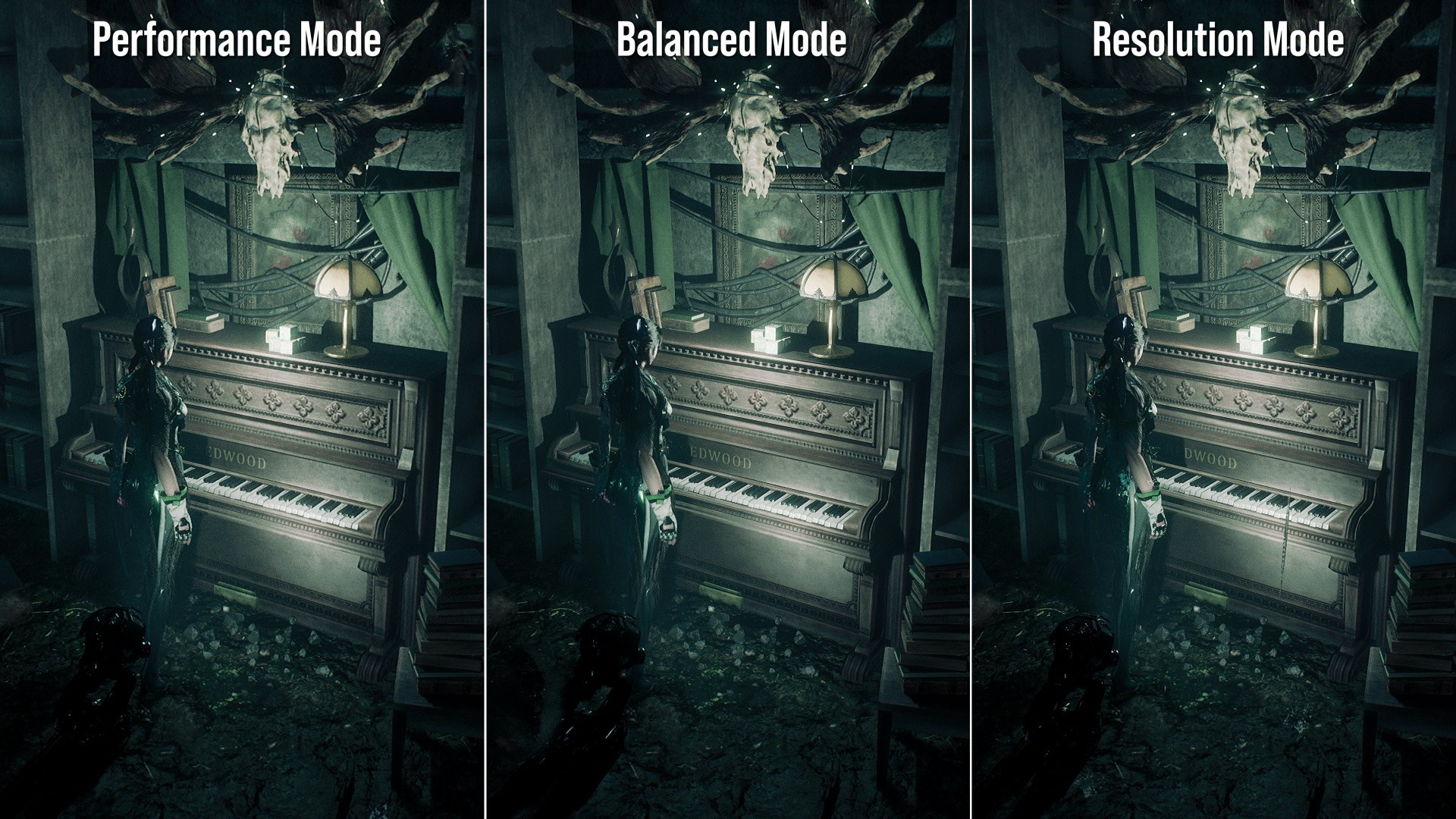 To put this into perspective, let's bring in the other two modes. The performance mode, for instance, runs at a native 1440p with a conventional (non-temporal) upscale. You get 60fps this way and pixel counts show it's a true 1440p most of the time. Lastly we have the resolution mode, which runs at 4K native at 30fps. In this case, 4K is the typical figure based on most counts, though I did spot a minor drop to 2070p in one stress point. For the image quality purist, the resolution mode is a great option, but only if you're able to accept playing at 30fps - a big ask giving the timing-sensitive nature of the combat.