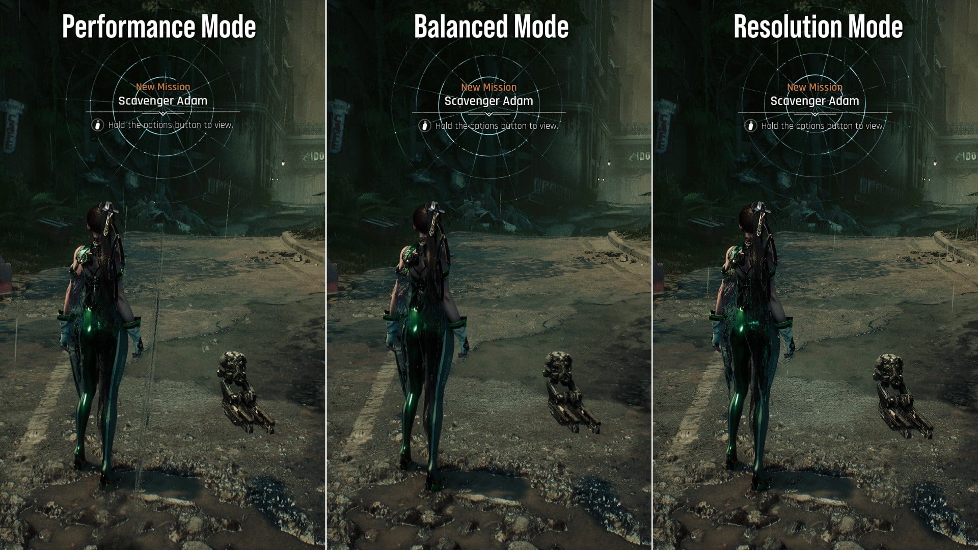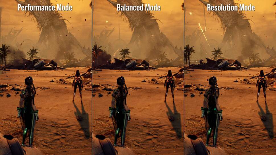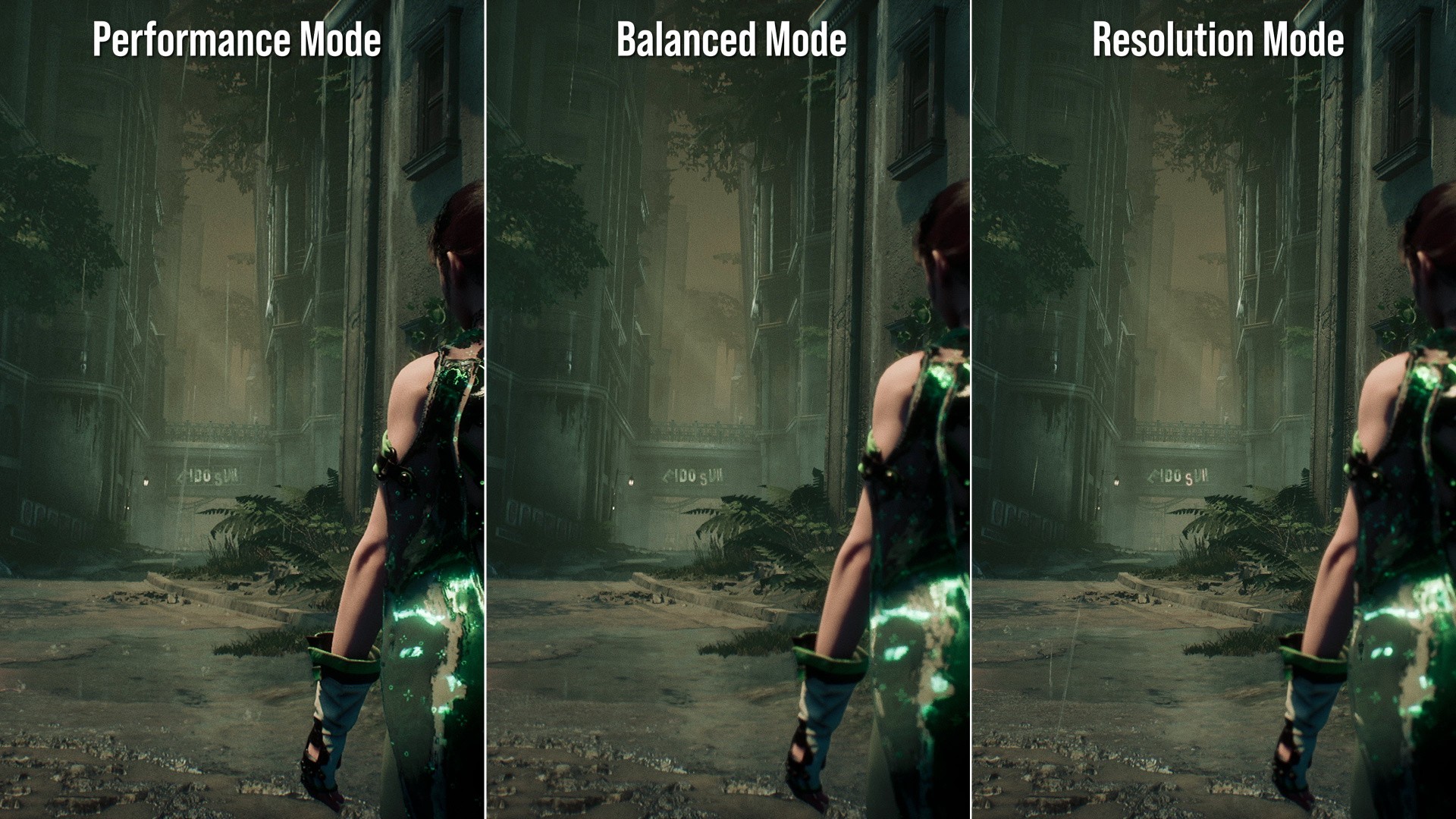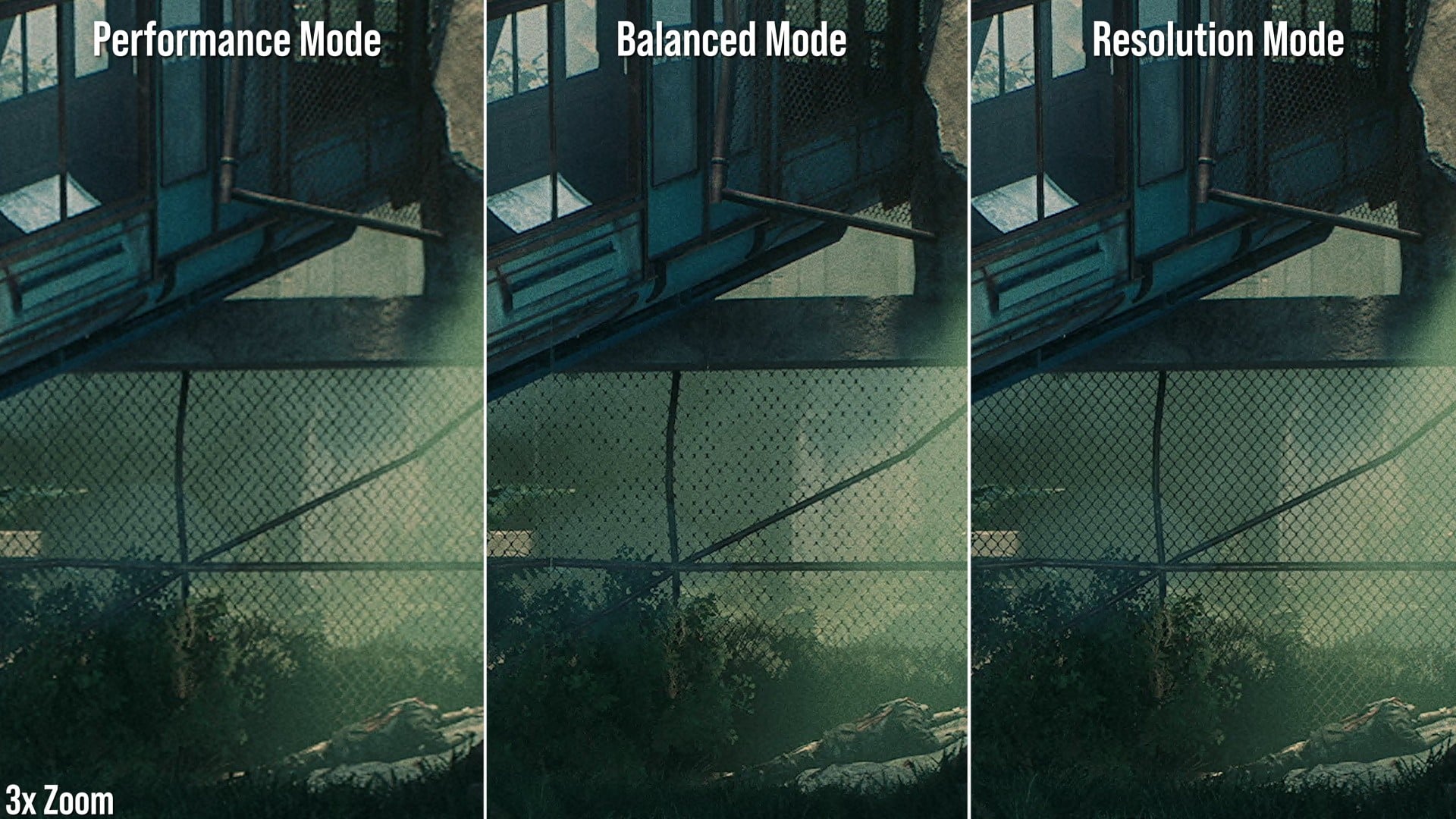The best-looking result is of course the native 4K image you get in resolution mode. However assuming you do want to keep 60fps in place, you're ultimately left with either the balanced or performance modes, each of which has its pros and cons.