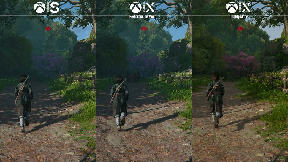 Beyond the native resolutions, shadow quality is degraded slightly on performance mode on Series X and PS5, though texture quality, draw distance and physics-based extras remain the same regardless of mode. Between the two premium consoles, the only difference of note is a higher grass draw setting on Series X's performance mode, compared to PS5's equivalent - though trees and geometry draw in at the same range across both consoles. Series S sees more significant cutbacks however: it runs with lower quality texture assets and lower quality shadows, though thankfully other areas like draw distances (again with the exception of grass) match the higher-powered base consoles.