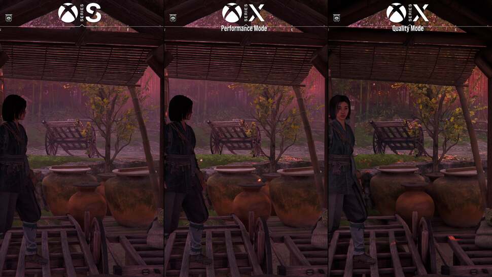 The Series S version presents the least stable 30fps mode. Despite its many cutbacks to RTGI, hair physics and resolution, it's not quite as watertight as you might hope. Frame-rate dips are noticeably more common than on Series X or PS5 in their equivalent 30fps options, with battles and cutscenes being the most frequent cause of disruption as resolution bottoms out at 720p. The hideout area at least locks to 30fps with RTGI enabled, but it's safe to say that the overall experience is noticeably less smooth on the junior Xbox machine and you don't truly get the generational leap that Shadows is offering elsewhere.