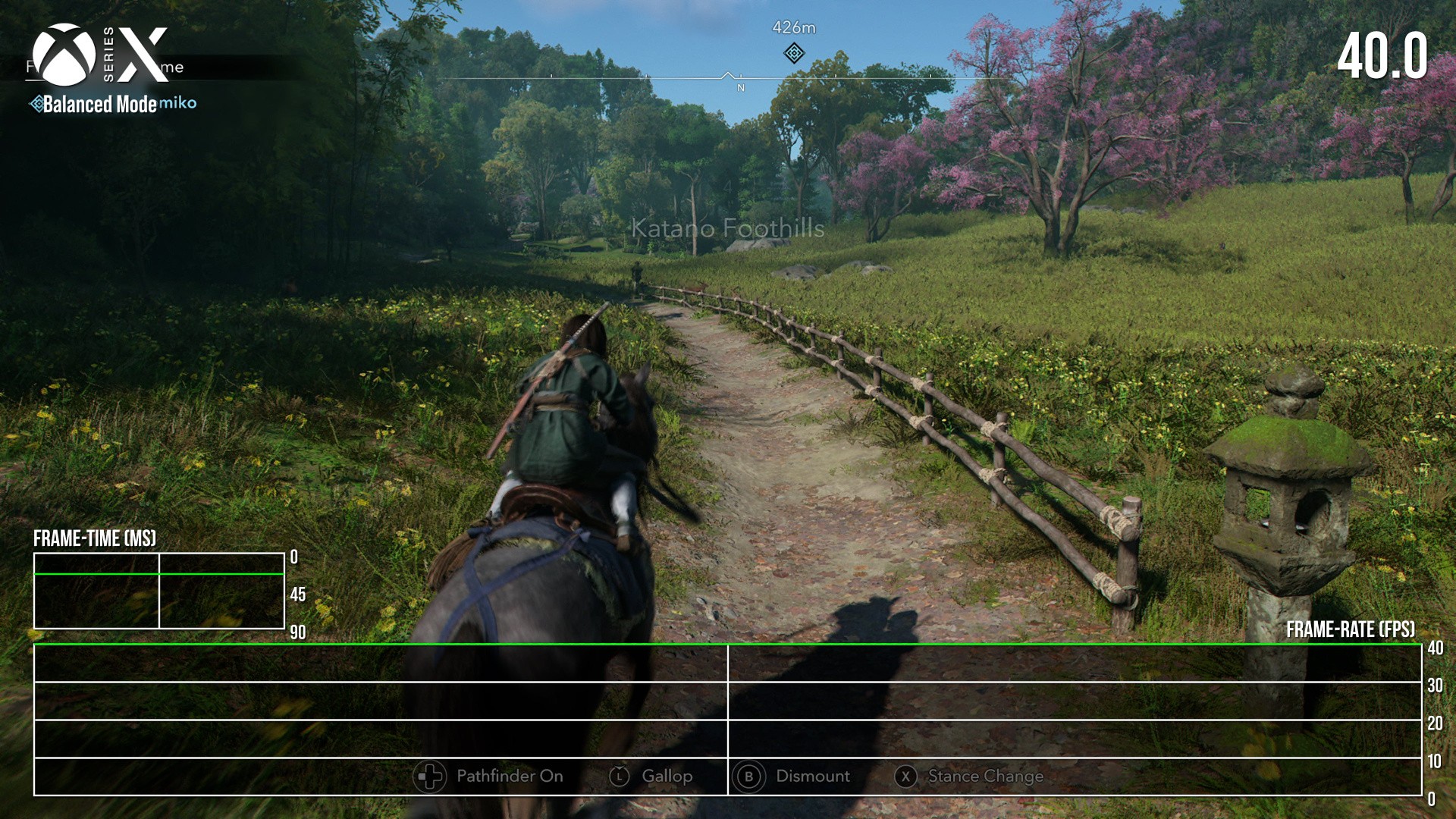 Frame-rate stability is similar in the 40fps balanced mode for 120Hz displays, with a good lock to the target frame-rate. If you want to keep the visual niceties but get a more responsive experience at the expense of a softer image, this is a solid choice. Curiously, the hideout area and cutscenes still run at 30fps, with the frame-rate switching abruptly once you pass the threshold to that region.