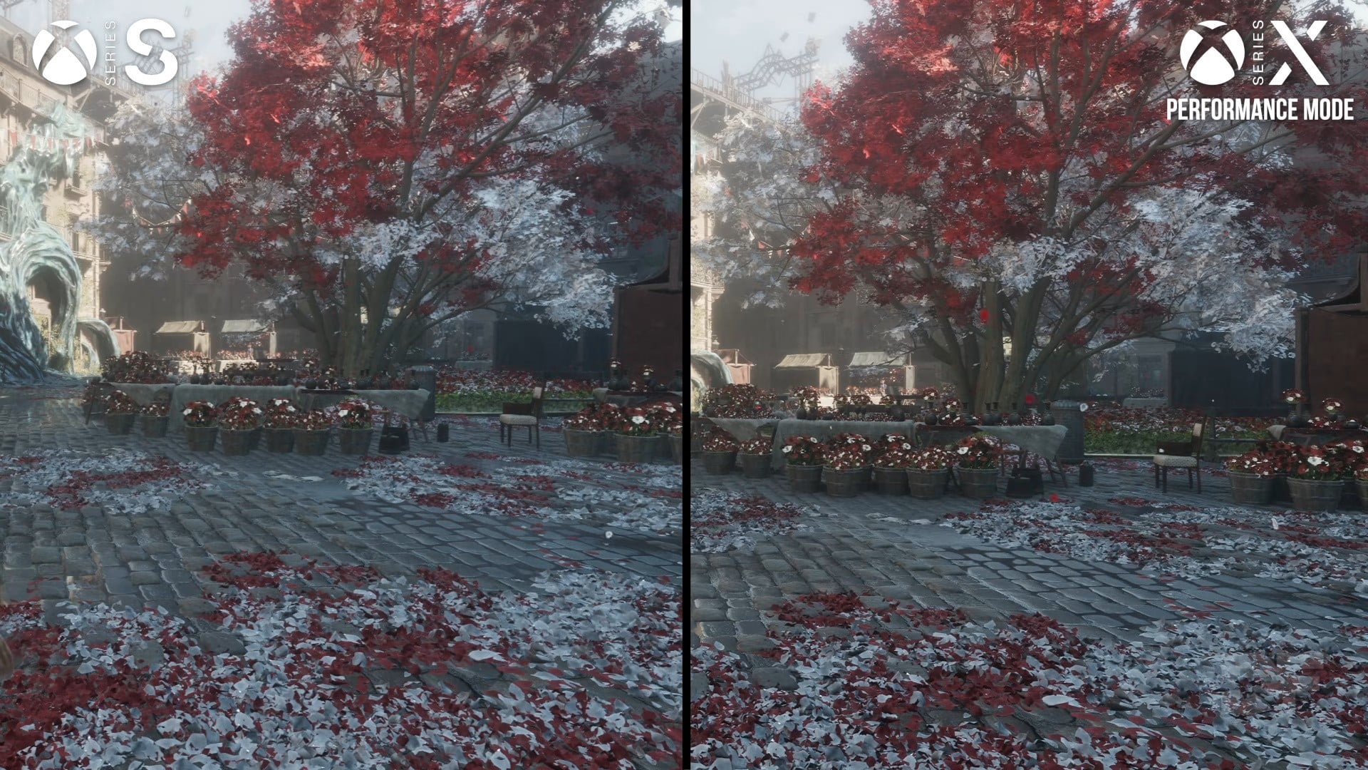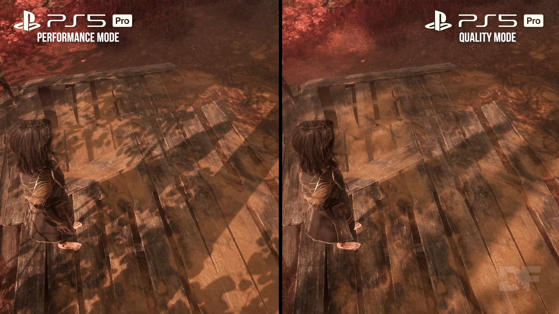 Moving down the ladder, PS5 and Xbox Series X look very similar to PS5 Pro. Both consoles resemble their PS5 Pro counterparts in terms of visual features, but resolutions are lower, eg in one shot PS5 in performance mode counts at 864p, down from 1080p on Pro, while PS5 in quality mode counts at 1224p, down from 1512p on Pro. Frame-rates here are much like the system's more powerful sibling, which is to say very good. The performance mode again is a good 60fps, with some dips noticeable during intense moments, while the quality mode hugs 30fps reliably.