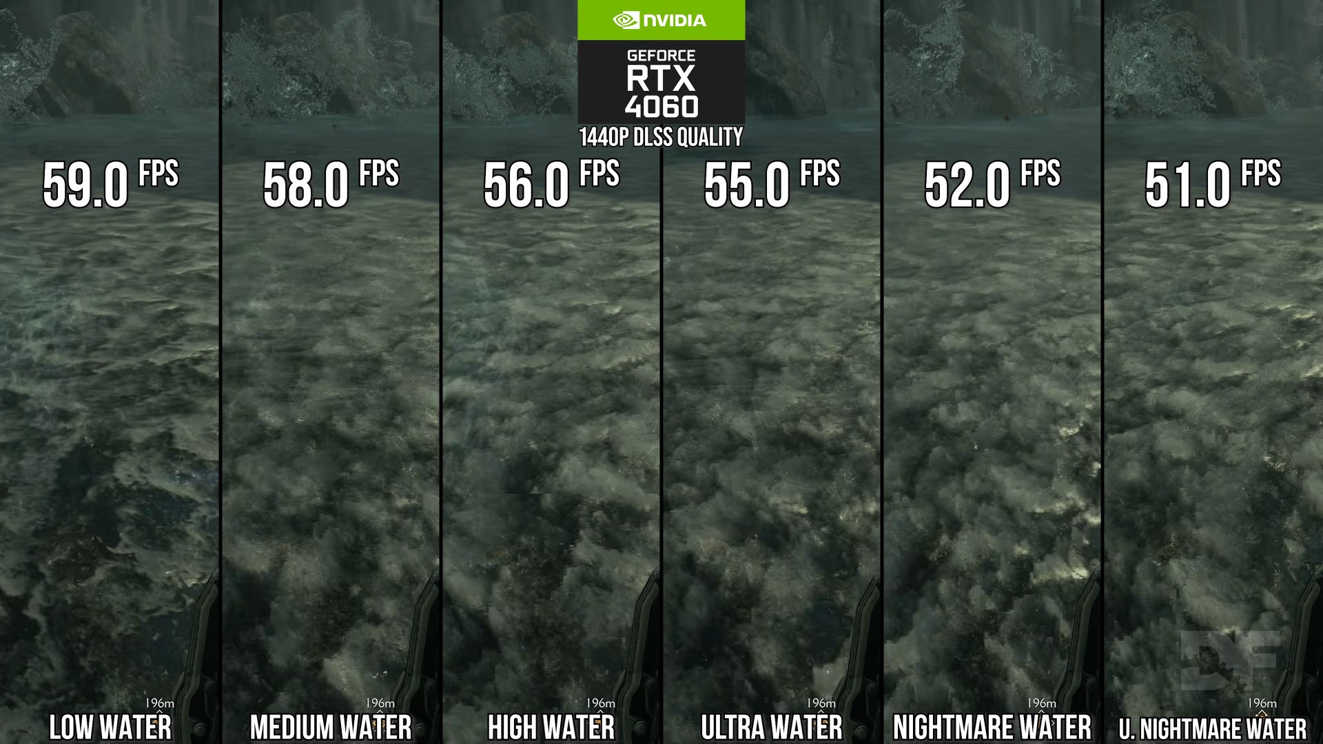 Considered together, these tweaks can have a nice impact on performance with minimal visual degradation. On our RTX 4060 1440p DLSS quality setup at max settings, we get 51fps in a static scene. With our optimised settings for low-end GPUs engaged, frame-rates climb by 27 percent to 65fps. Meanwhile, medium optimised settings run 14 percent faster than max, and high optimised settings still run eight percent faster. In a scene with more water, the differences are larger - 32 percent faster for low, 19 percent faster for medium and 11 percent faster for high optimised settings. That helps a challenging early game fight run in the 50s rather than the 40s, staying well within VRR range and with similar performance to the PS5.