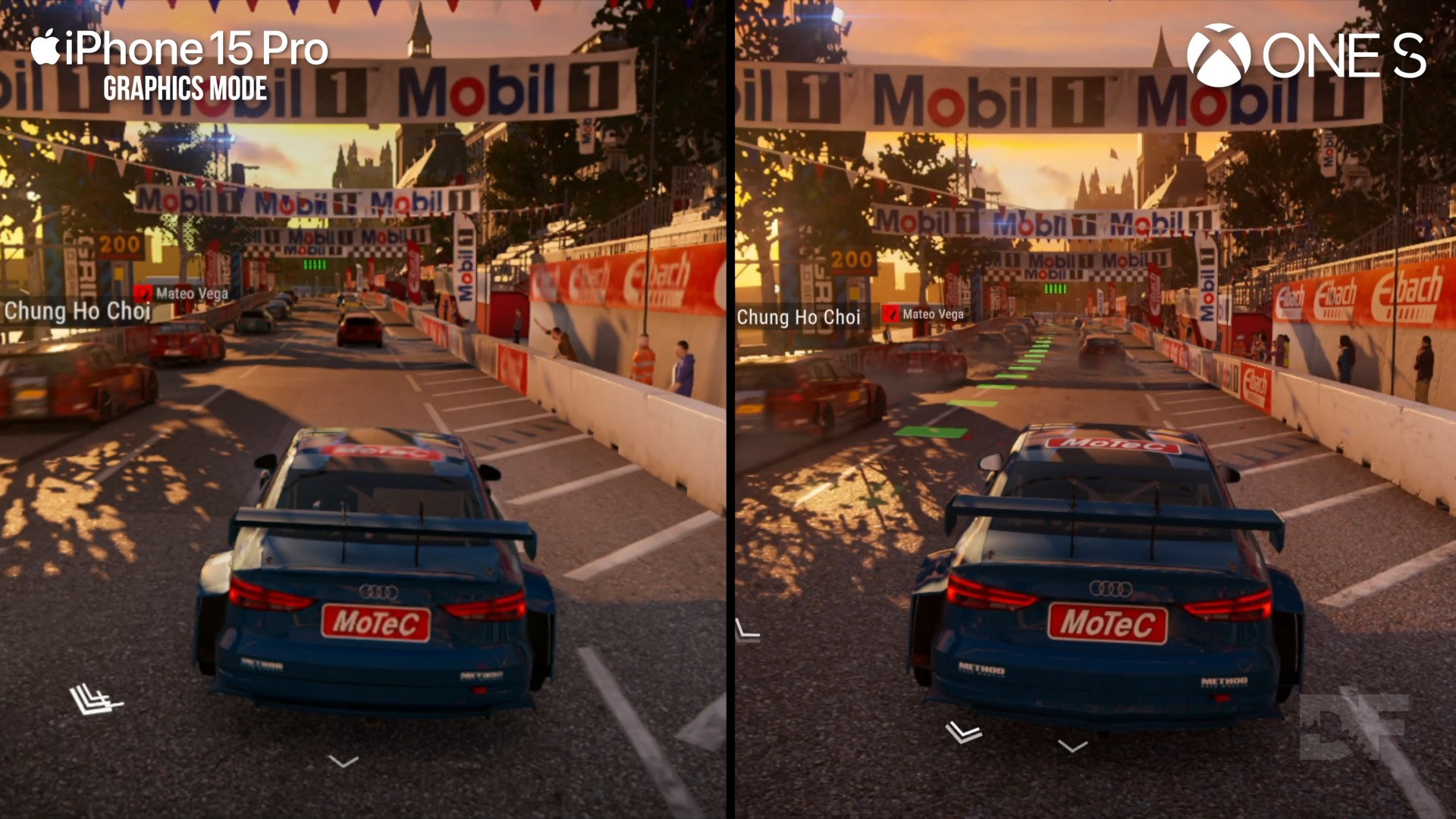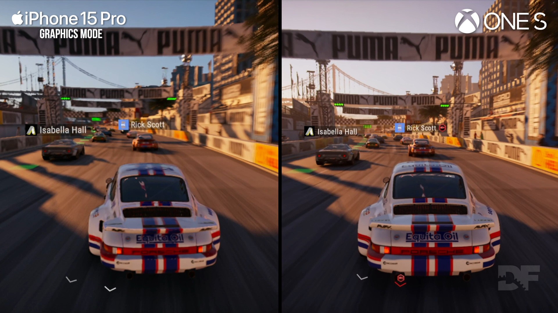 Model detail also takes a hit. LODs pop in closer to the camera and texture detail is worse, despite the fact that I have the game's high resolution texture pack installed. Texture filtering is reduced, crowds are simpler, while particle effects are pared back or gone. It goes without saying that resolution drops - Xbox One uses a dynamic 1080p that typically settles around 900p, while iPhone 15 Pro delivers around 630p with no sign of Apple's impressive MetalFX upscaler.