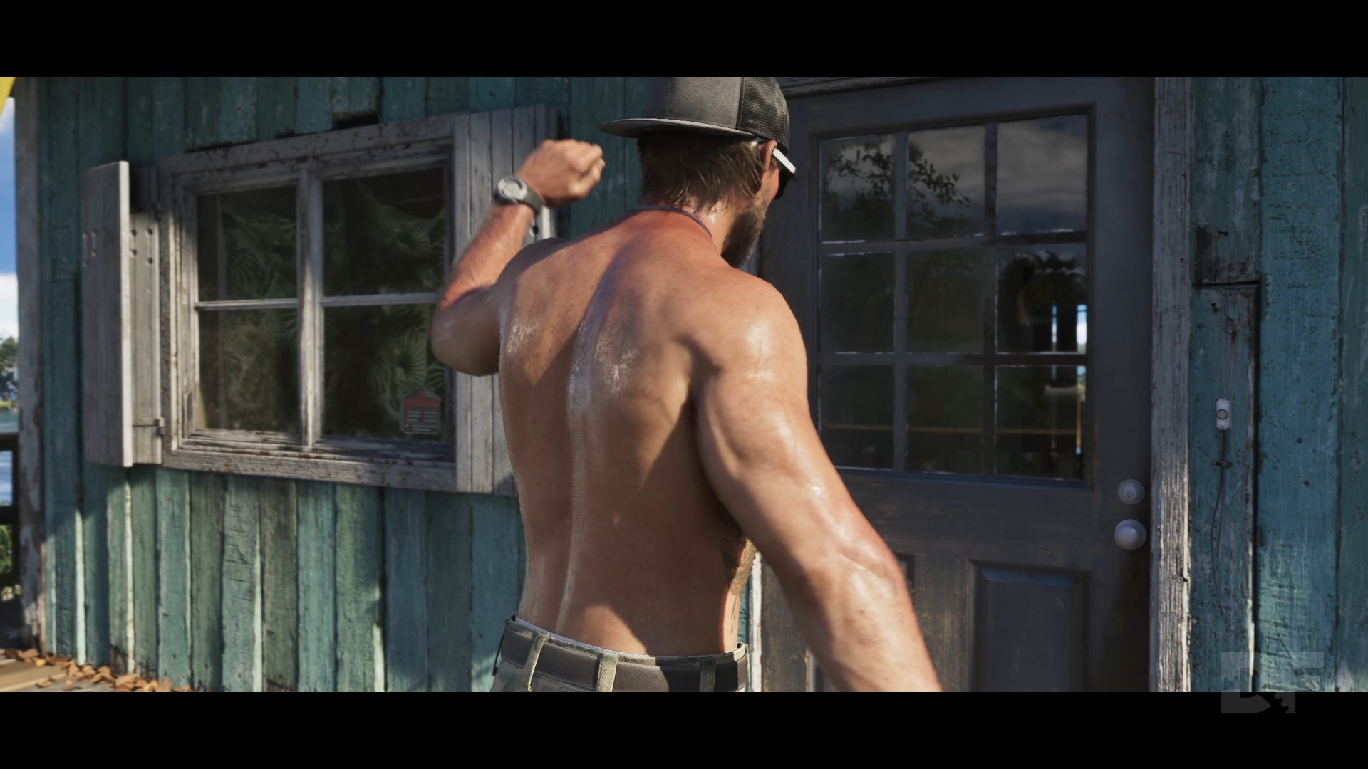 The specular response of the skin rendering here is excellent too, with the sweat visible on certain characters being particularly noteworthy - from the sweat beading on the brow of a hostage to the wet back and arms of Jason as he walks into his beach house. We also noted the secondary animation found in baggier clothing, giving it a more realistic look as characters walk or move their arms. The arm hair on display here is also next-level, with realistic-looking fuzz that could look exceptional if the game features an (optional) first-person perspective.