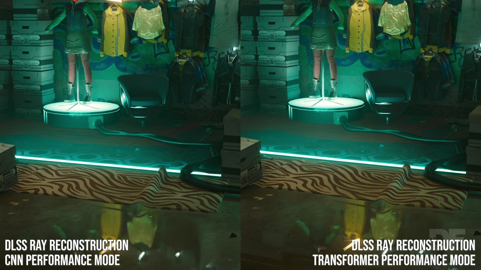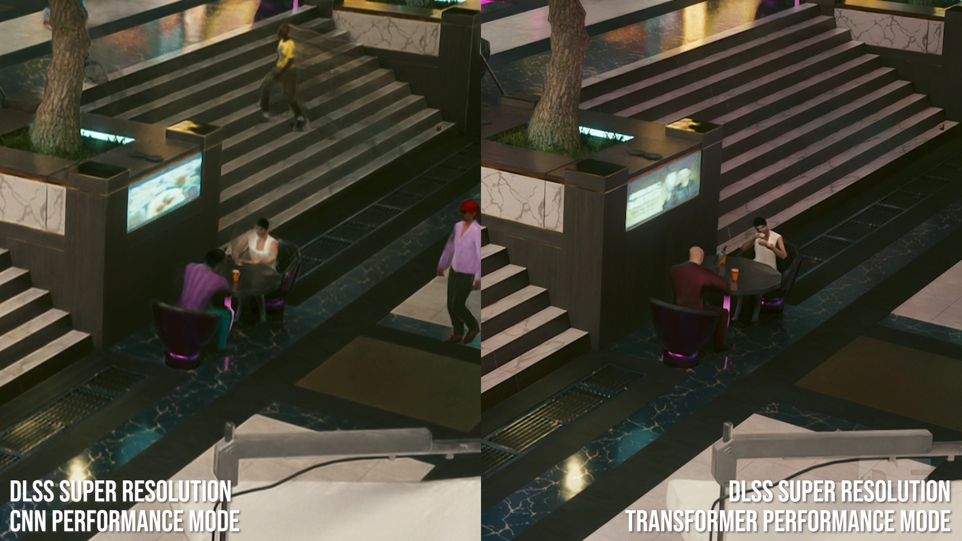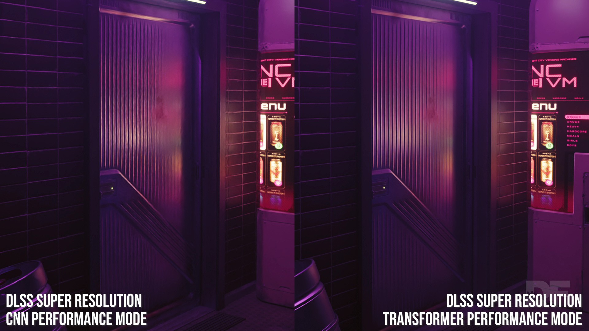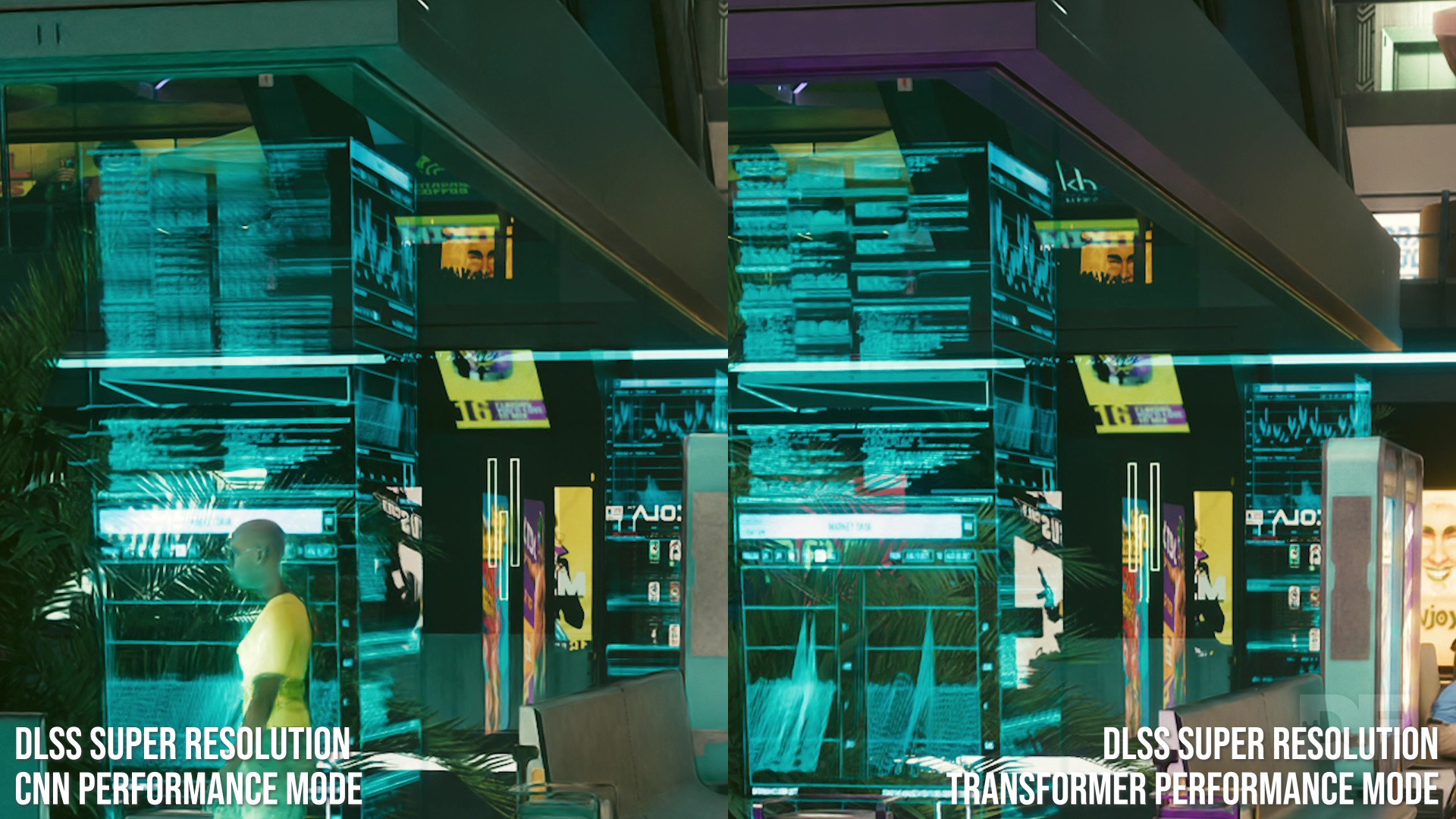 Even though the captured material we had was limited, the general impression that image quality specialist Alex Battaglia and I have from the b-roll is that despite running at the same 1080p internal resolution as the CNN performance mode, the vision transformer equivalent doesn't look like it - it's better. And there are some clear signs that some of the long-standing issues we've had with DLSS are much improved. This is best shown in the video above, but smearing and ghosting are drastically reduced. Shimmer in motion and unwanted 'stylisation' of content are mostly gone, Meanwhile, ray reconstruction - essentially upscaling for ray tracing - shows similar, highly welcome improvements.