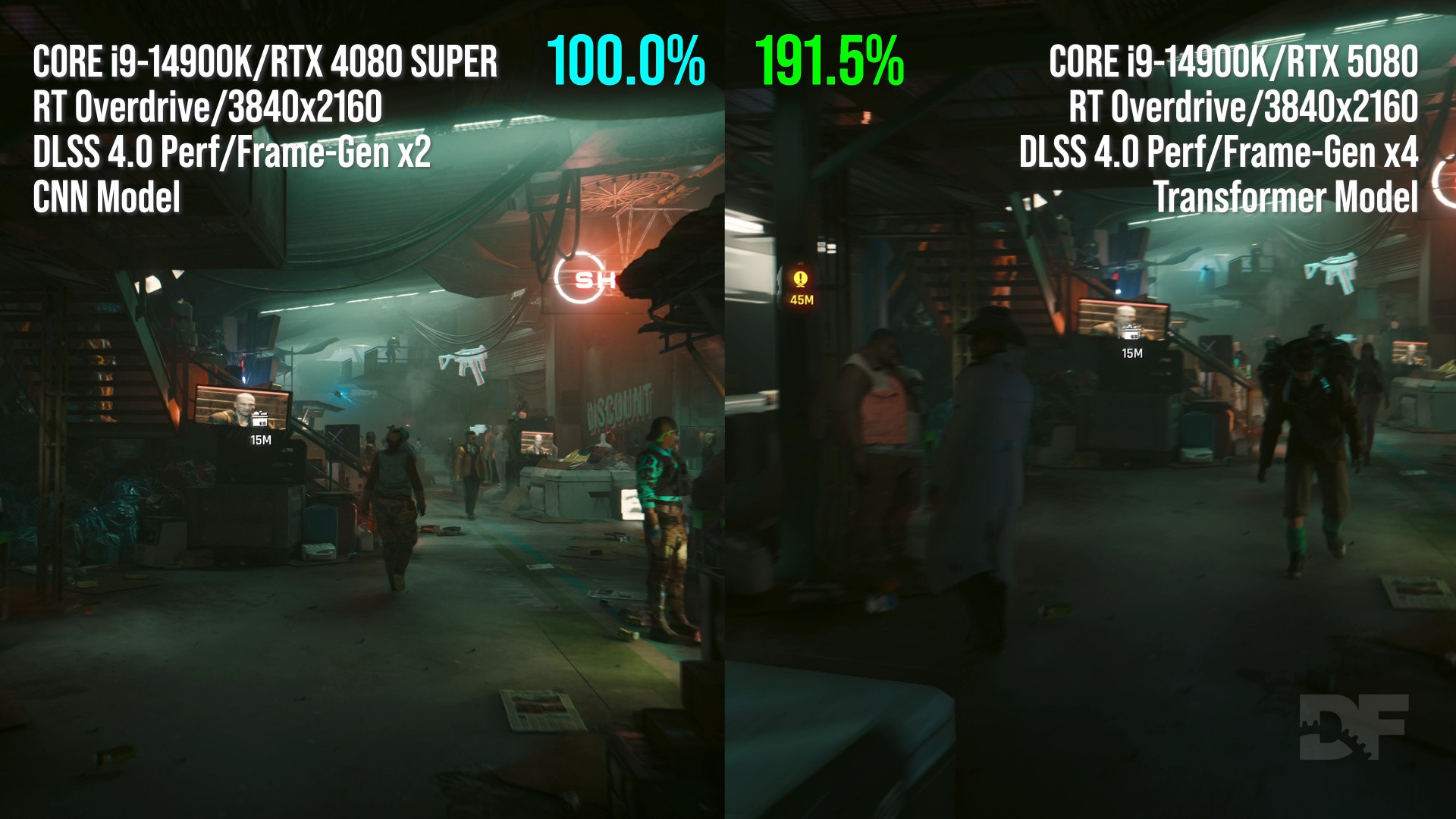 Comparing the RTX 5080 with full frame generation and the transformer model enabled to the outgoing 4080 Super with single frame-gen and the existing CNN super resolution/ray reconstruction tech, I logged an improvement of 91 percent to frame-rate.