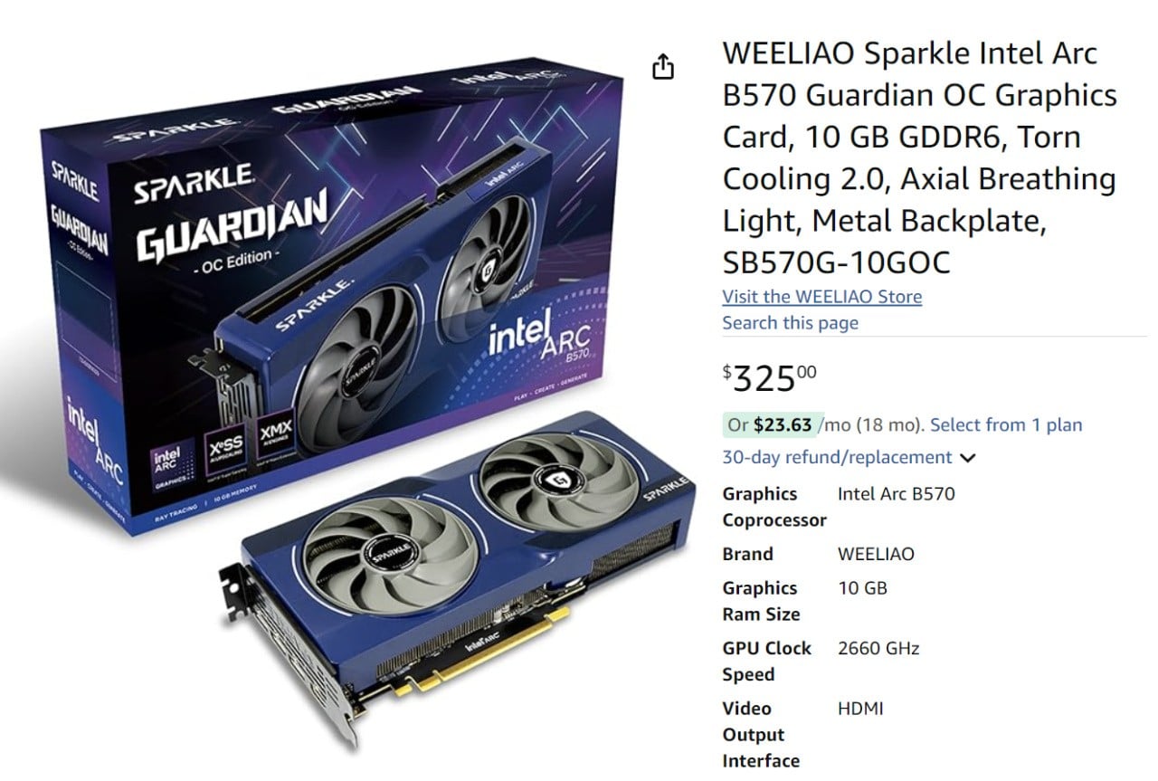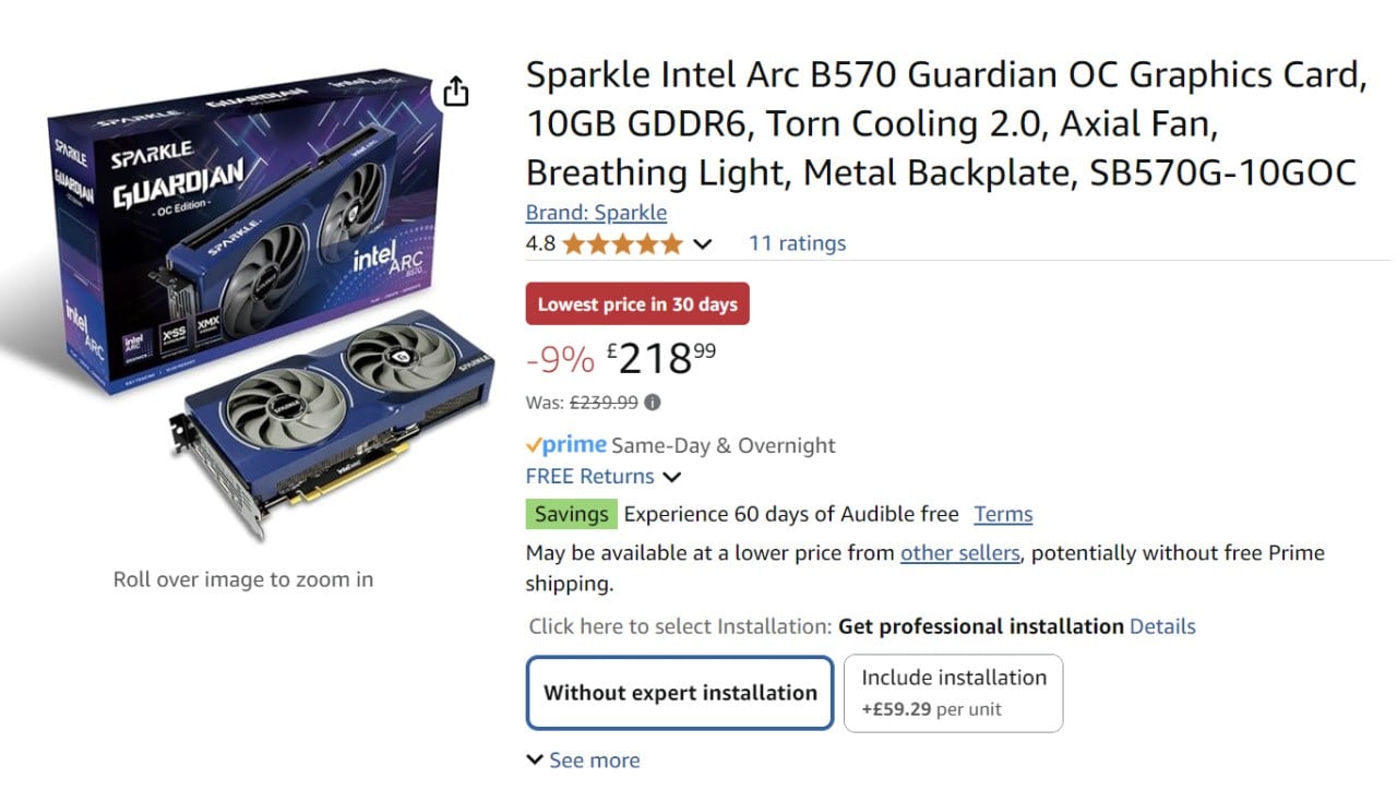 Unfortunately, even months post-launch, actually buying a B570 for a reasonable price can be quite a challenge, depending on where you are in the world. In the UK, things aren't too bad, with an asking price of £219 for a handsome blue B570 Sparkle that outperforms similarly-priced Nvidia and AMD competition. In the US though, the cheapest B570 available is the same card at $325 - so far above the MSRP as to be not worth recommending even for Intel super-fans.