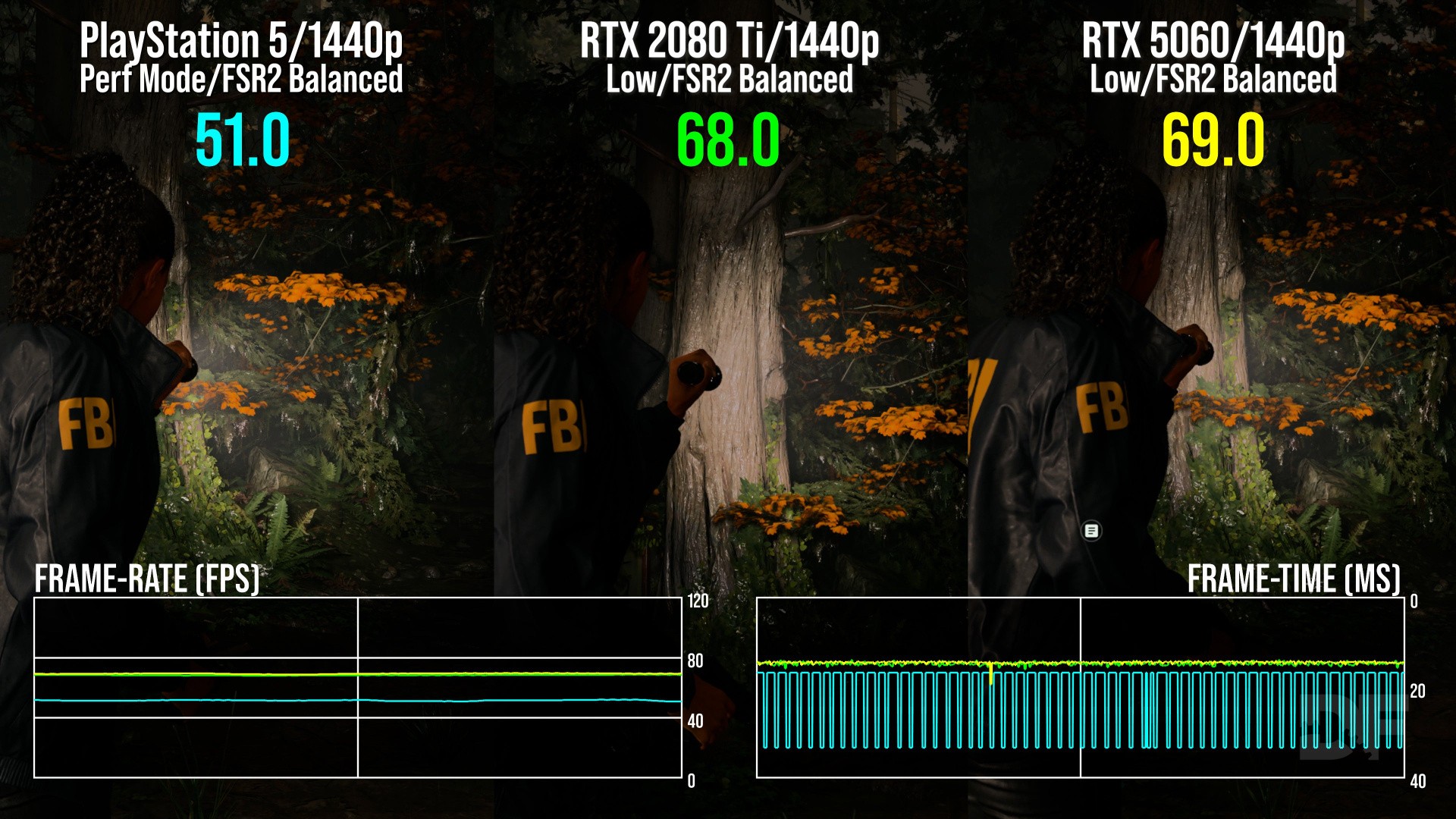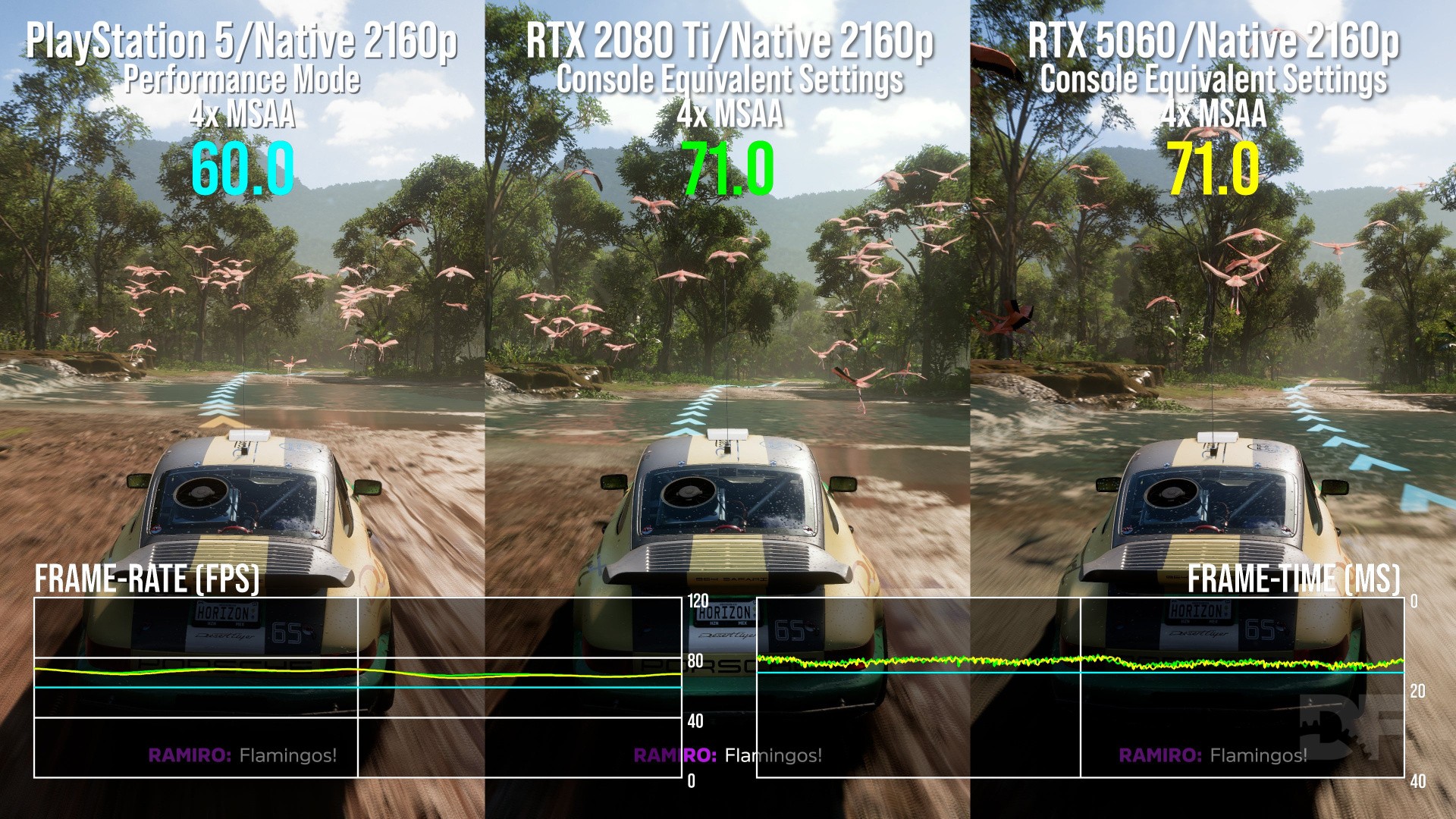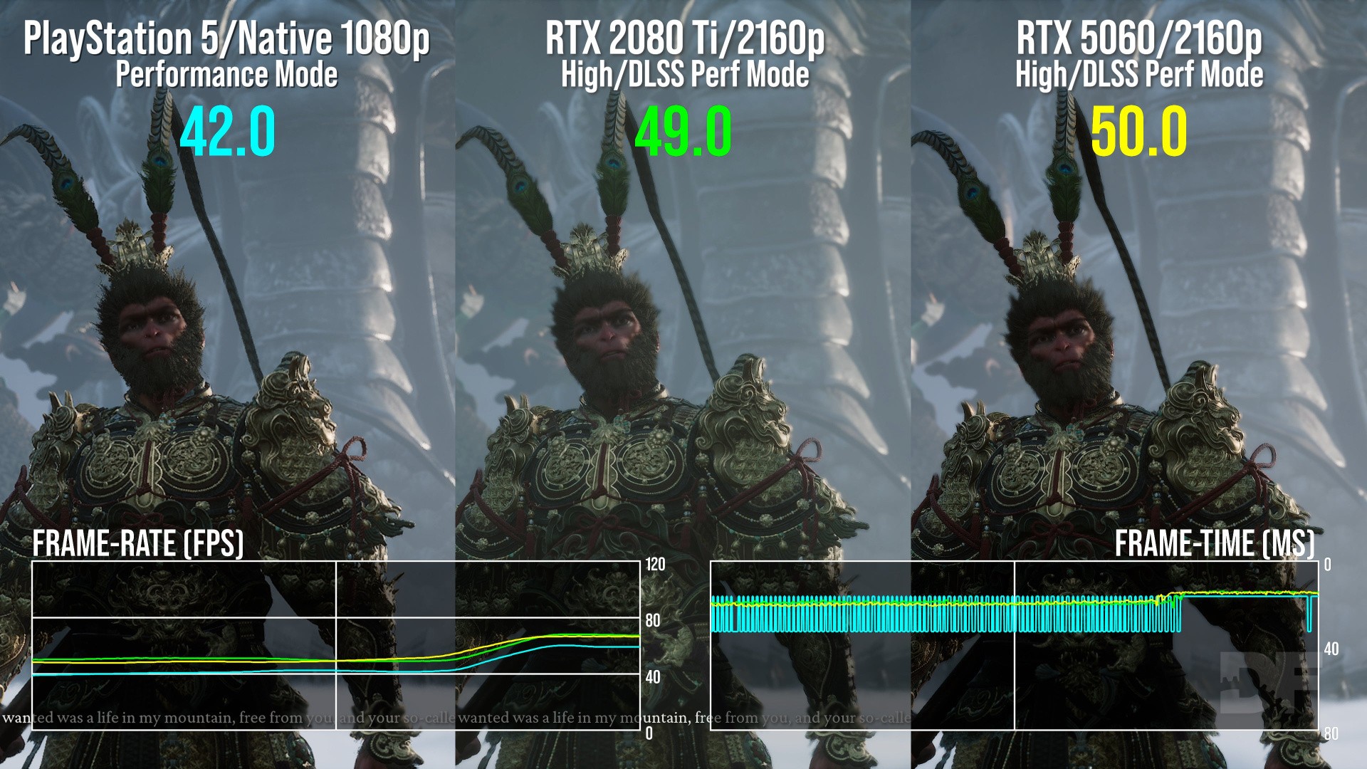 I also spent some time doing some custom testing, similar to the RTX 5060 review, starting with PlayStation 5 console comparisons. So, here's the thing. Generally speaking, console performance trends upwards against equivalent PC parts. The PlayStation 4's GPU is effectively a customised Radeon HD 7850/7870 hybrid - but the results in the mid to late era of the console's lifespan effortlessly outstrip what those GPUs produced. The RTX 2080 Ti not only predated the current-gen consoles by two years, but getting on for five years after their launch, it continues to power past their capabilities.