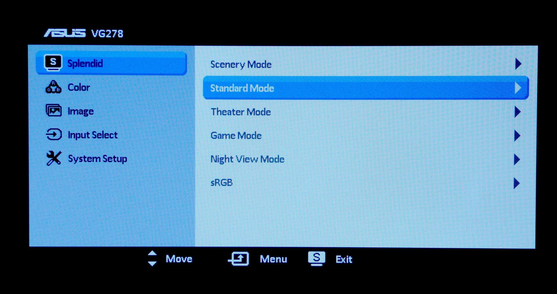 There are few surprises here for those who've purchased Asus monitors in the past. Taking centre-stage on the available options are a number of presets, each of which can be tweaked by the user for more optimal performance.