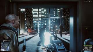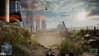 Otherwise, differences between the two fall into nit-pick territory. Ground textures appear different during the campaign mode, with variations of the same texture being planted in the same spot. Neither one is especially greater in detail, suggesting these tiles are partially randomised, much like the soldier camo designs on our character's arms. The PS4 does on occasion suffer from a slight delay in drawing in higher textures, and likewise, the lens flare effect in some scripted driving scenes on the Shanghai level fails to materialise. These are rare and subtle contrasts; otherwise, all lighting effects such as god rays, bokeh depth of field, shadows and physics are indistinguishable between the two - also true of draw distance on minor objects for massive 64-player online maps.