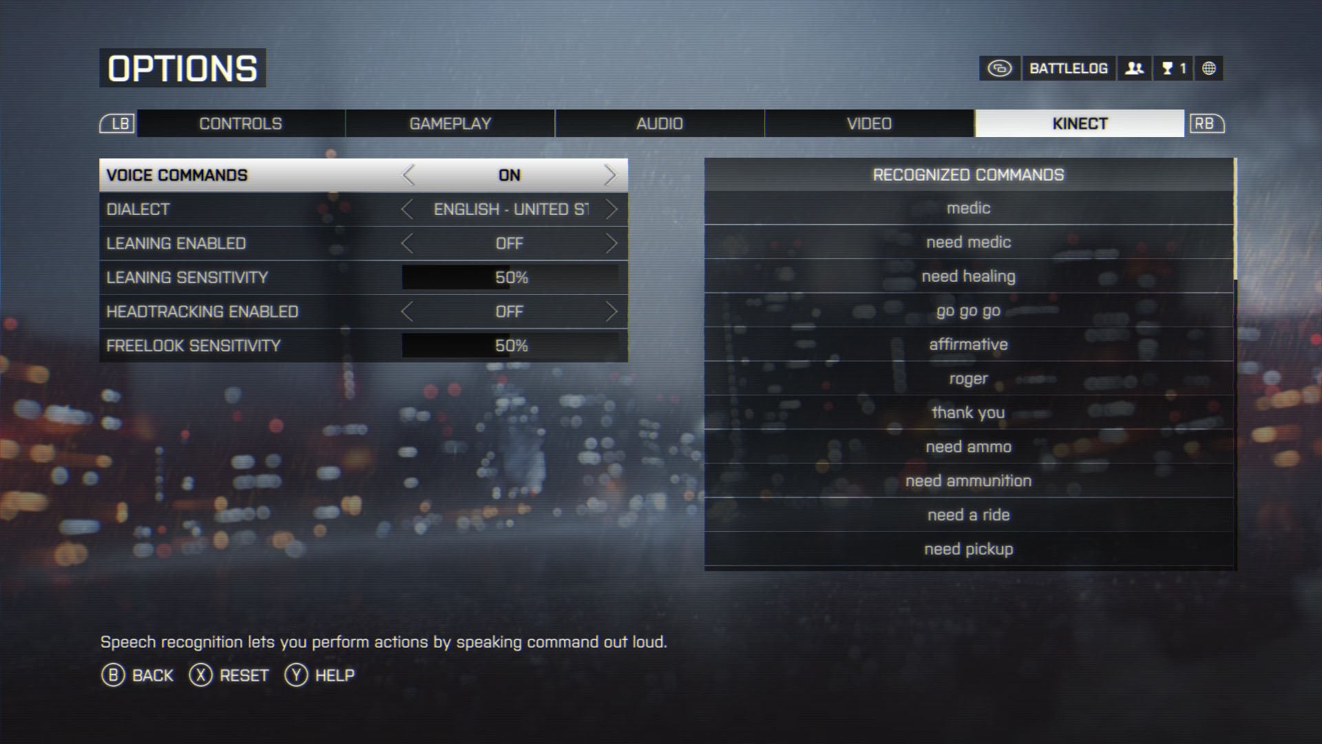 In terms of the more experimental features available to consoles, it appears Kinect support is etched in on the Xbox One side. While the hardware wasn't available to us at the time to give it a try, the menu tab at least shows that there are options for voice commands, plus body-tracking that translates a player's left or right lean into the game. We have to admit that we're quite intrigued to see how head-tracking works in addition to this, not to mention the implications for multiplayer gaming.