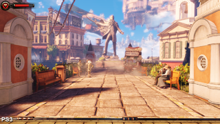 While this is quite impressive, the streets of Columbia are sparsely populated for a world at the height of its power. Civilian NPCs freely roam around certain sections of the city designed to set the tone for parts of Columbia, but when the shooting starts they are nowhere to be found, leaving the streets feeling rather deserted. It's disappointing to see a world designed around feeling very alive, actually having very little life in it. More than anything this appears to a consequence of the advanced AI routines being used by Elizabeth and the enemies situated throughout the city - we can well believe that limitations in processing power restrict how many characters it is possible to have on-screen at once.