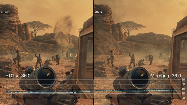 Bearing in mind that Black Ops 2 runs with a somewhat variable frame-rate (in contrast to New Super Mario Bros U, which is locked to 60Hz), we thought this would be a good opportunity to see if the mirroring function incurs any kind of further performance hit when the system is servicing two screens. Mobile hardware tends to have bandwidth issues resulting in frame-rate drops when external mirroring is enabled, but the good news is that we could spot no difference at all on Wii U when we analysed HDMI streams running with mirroring both enabled and disabled.