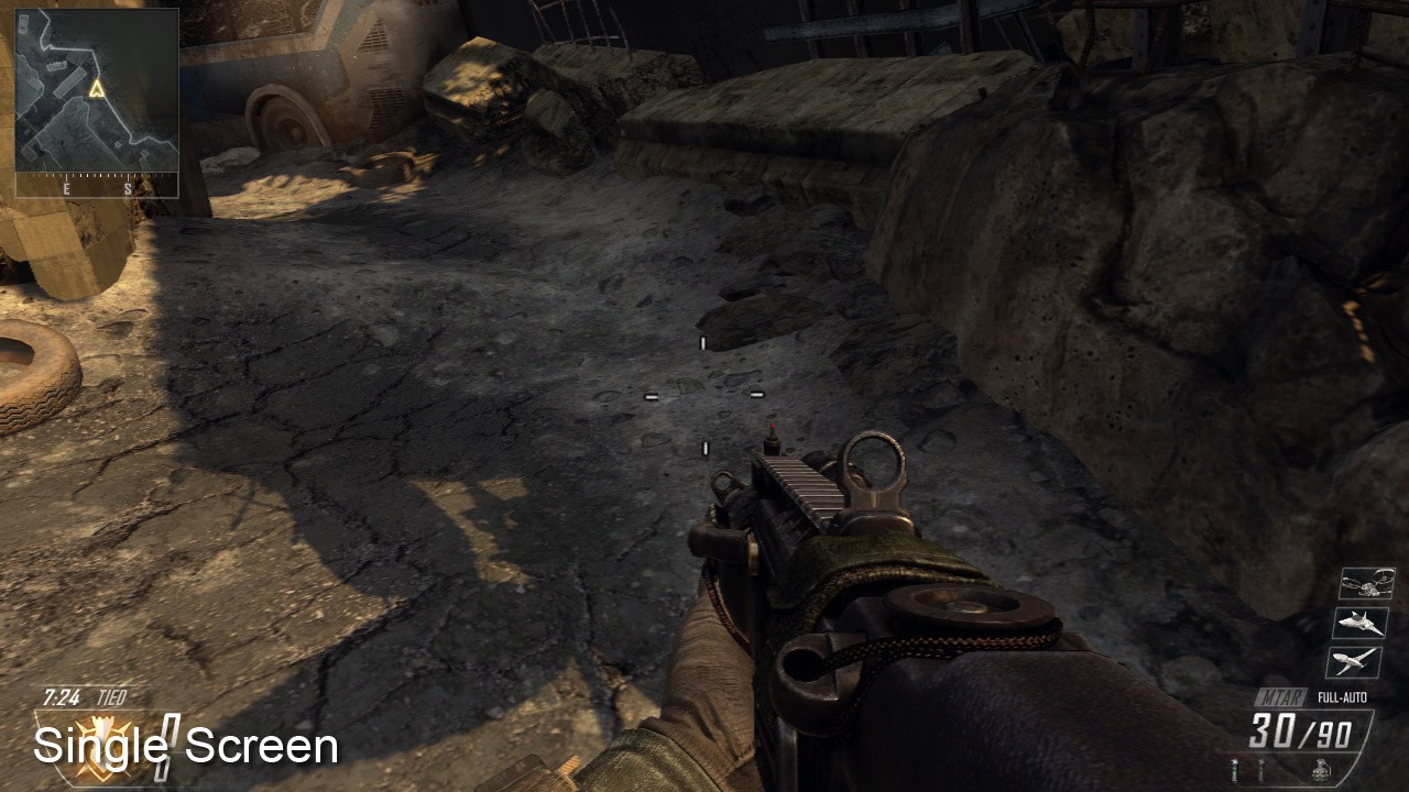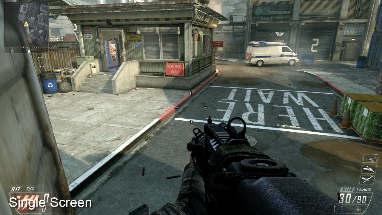Where Treyarch deserves credit is for the expansion to the local multiplayer options, specifically in terms of split-screen. While the standard two-player mode of the existing console version is supported, the Wii U has an excellent alternative: discrete screens for each participant - HDTV output for one player, GamePad for the other.