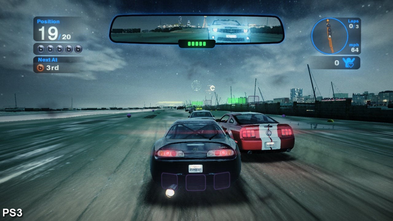 The perception on 360 is that some of the heavier post-processing effects can prove too much for the renderer in certain, rare situations. On PS3, it appears to be more the case from our testing that sometimes (rarely, as the tests show) the sheer amount of cars and effects does incur a significantly larger load that causes the tearing.