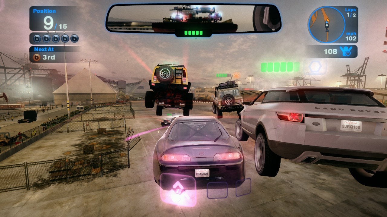 Consequently for a relatively small number of cars etc, the game actually runs easily at 60FPS, we just need that extra GPU/CPU time for when things start to hot up so that the player doesn't get a laggy experience. It just takes self-discipline; you have to resist the urge to just turn things up across the board as you know later on you're going to need those resources to render all the crazy special effects.