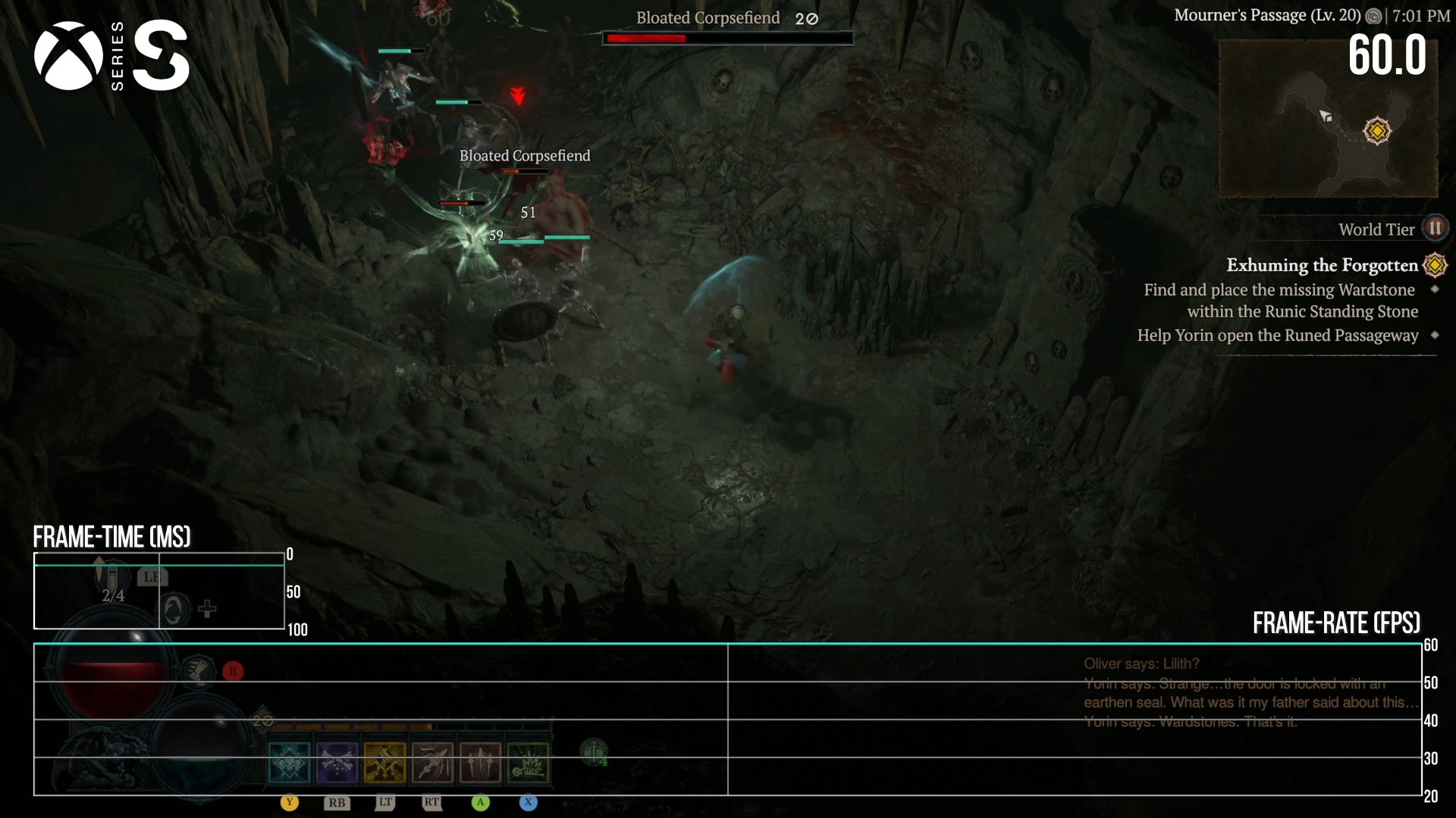 Performance-wise, the One X comes in with a respectable 30fps. The game does suffer from some occasional traversal stutters though, where the player character seems to stop in place for a couple of frames. Outside of that minor blemish, it does land a stable 30 with only limited exceptions. The constant lateral movement and lack of motion blur does give the game a bit of a choppy feel though in typical play. However, Series S delivers 60fps and I vastly prefer the way Diablo 4 feels here, as it just feels so much better to control at double the frame-rate. It's not perfect - I spotted some minor dips in cities, and some cutscenes run at an uneven update - but it is largely a smooth 60fps experience and those stutters I noticed on One X weren't apparent here, at least to my eyes.