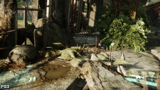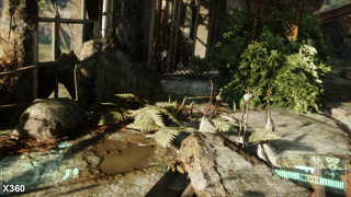 Between the two consoles, the higher-resolution 360 version is visibly sharper due to the reduced level of upscaling taking place, but at the same time the difference is less apparent during gameplay than it is when shown in a side-by-side comparison. One of the key reasons for this is the way in which much of the foliage is rendered during the campaign: a large amount of greenery is actually made up of textured geometry (compared to mainly alpha-blended sprites in the beta/online modes), so when upscaled they don't suffer from having the chunky and blurred appearance that plagued these elements on the PS3 version of the Crysis 3 beta. That said, these side effects are still present on 2D rendered elements on both versions, such as the branches of trees and various plants.