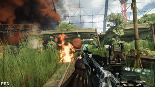 Much of the game is set in lush foliage-covered environments featuring plenty of complex geometry and heavy use of alpha-based greenery - taxing stuff for the consoles - and we find that the level of smoothness fluctuates constantly on a regular basis on both formats, ultimately leading to incredibly variable controller response that barely manages to stabilise. Firefights against just one or two enemies can bring frame-rates crashing down, even when slowly sneaking around areas in which draw distance and heavy details are reduced.