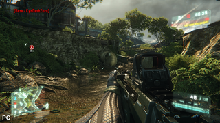 Both of the maps chosen for the beta feature environments that deliver a good sense of scale absent from some of the multiplayer locations in the last game, even if the player is limited in how far they can travel due to invisible bounding areas situated around the maps. On the PC, these areas are wonderfully realised with superb lighting (including Crytek's single bounce global illumination implementation), highly detailed texture work and modelling, along with plenty of lush foliage which all helps to the create the distinct feel of a man-made landscape being reclaimed by nature - here we find the 'maximum game' ethos is clearly in effect. A range of anti-aliasing modes also keep things looking smooth enough without necessarily incurring a large performance hit; we used SMAA (Updated: sub-pixel morphological anti-aliasing), but FXAA and traditional MSAA are also available.