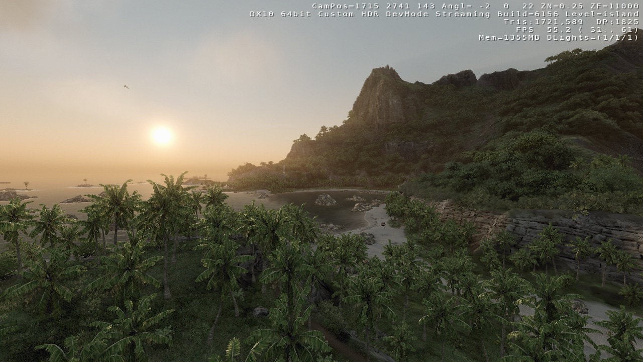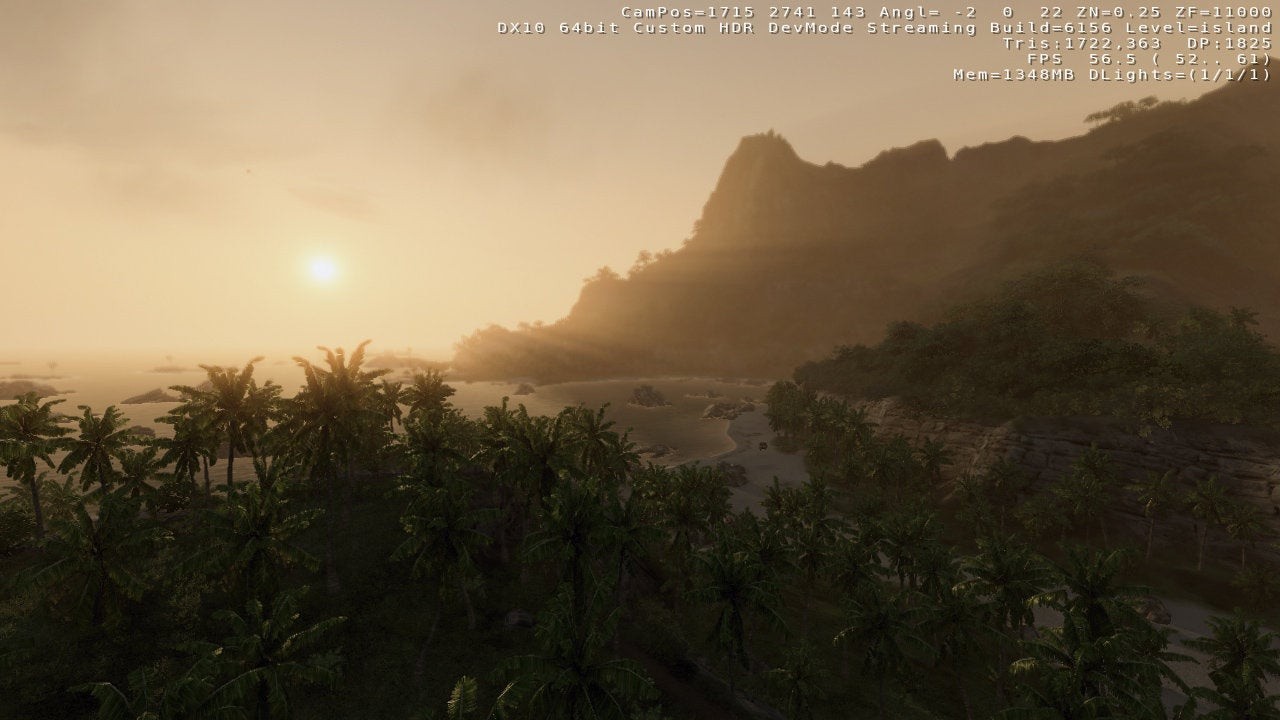 Before we continue, check out some of Nebula's existing mods. It's a series of before-and-after comparisons that pits CryTek's original up against our collaborator's remixed renditions. The tech is so flexible that in the right hands, it is capable of more subtle, realistic lighting and more apparent atmospherics. Despite the increase in overall image quality, the mods run with no performance penalty over the unmodified game, as you can see in the debug readouts in the top-right of each screen.