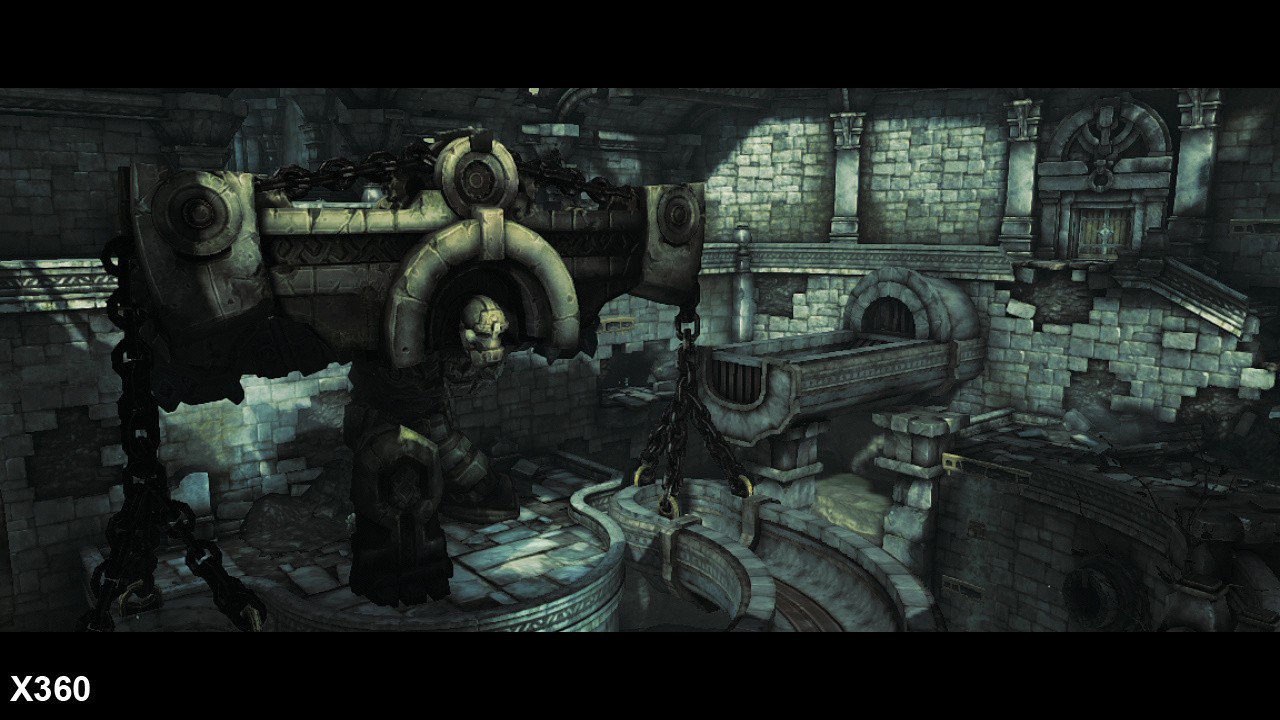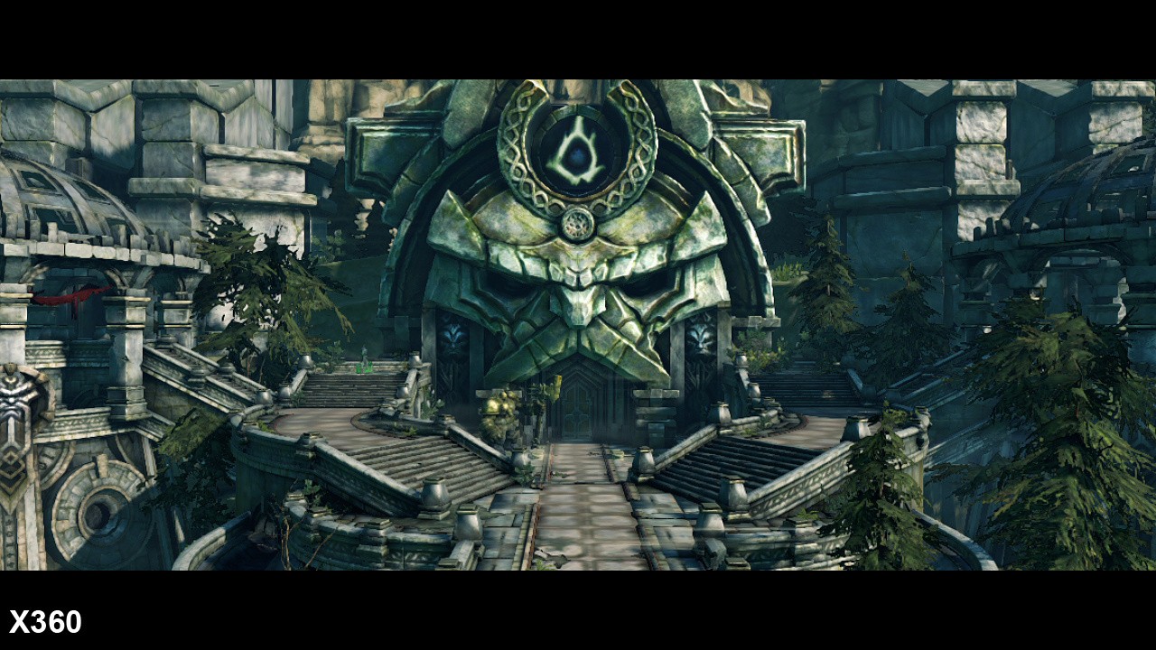As you would expect, the varied nature of the world also has an impact on performance, with more complex areas causing frame-rates to drop and heavy screen-tearing to manifest on both formats, although a smooth 30 frames per second update is present throughout much of the game when the engine isn't being pushed too hard. Basically, Darksiders 2 takes the usual approach seen in many current-generation titles of capping at 30FPS and allowing the game to tear when the engine cannot keep up with the rendering load. The idea here is that torn frames have less of an impact on controller response than a reduction in frame-rate, although in an ideal scenario we'd obviously rather have neither.