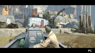 Physics may not be as advanced as Borderlands 2's blood-spilling, fabric-simulating bedlam, but at least certain objects shatter when impacted, such as tables and chairs. The same dynamics are at play on consoles too, where rag-doll physics on enemies can be an especial highlight. One particular battle has us delivering a critical sword-swipe to a guard, who proceeds to smash right through a wooden signpost and then bend half-way over a river-side railing. It's subtly amusing, but gives each enemy a real sense weight and lasting presence. As a result, once you're done it's often a good idea to hoist the body back up again and fling it out of the view of other passing guards.