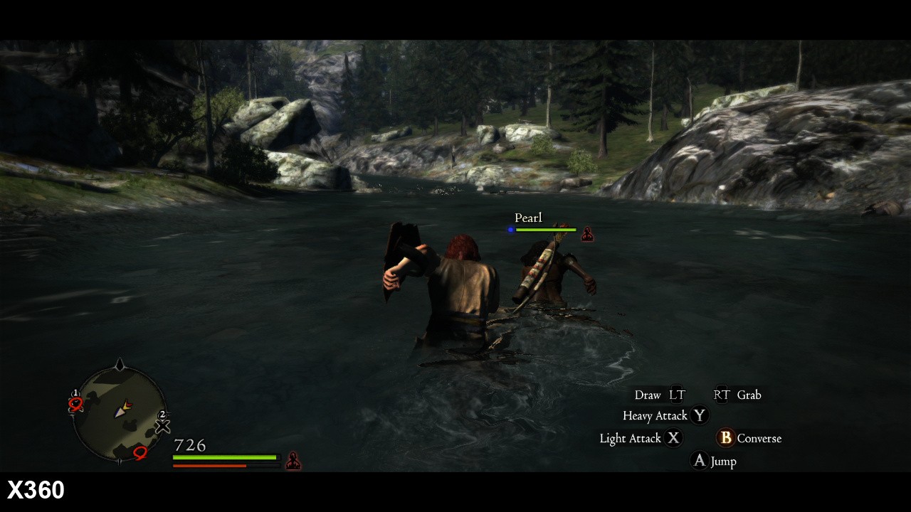 Outside of battle, the gap isn't quite so pronounced. The 360 largely maintains a smooth 30FPS update when traversing the game's large environments, tearing when entering more detailed areas, but only really dropping frames when entering more demanding locations - the action comes across as being relatively smooth, but still quite uneven in places due to some noticeable drops occurring from time to time. Sony's console tries hard to stick to the target frame-rate, but frequently misses it to various degrees. At worst we see significant dips down to around the 20FPS mark, but we find that 24 to 28FPS updates are commonplace during a general run of play.