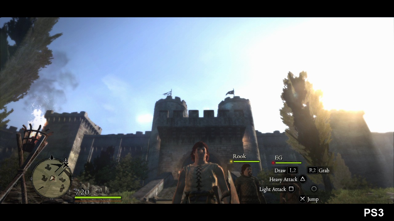It's clear from the video that neither version acquits itself particularly well in combat. In the most intense encounters against the game's large foes and boss creatures, the frame-rate is heavily impacted and controller response is noticeably compromised. Neither game really comes out on top when fighting these creatures in more confined, indoor areas. However, it does appear that the Xbox 360 version recovers performance marginally more quickly than its PS3 counterpart.