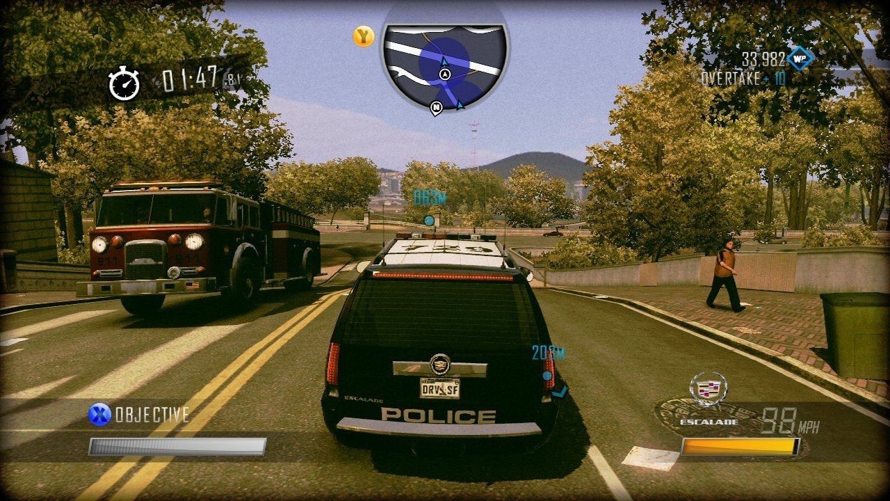 Cars and environmental detail appearing from nowhere is only really evident during the fast-moving "god view" Shifting, while in-game there is no noticeable pop-in whatsoever, no fogging and a full draw distance producing a very solid, involving look to the game with few visual artifacts. Just about the only noticeable compromise we found (aside from the frame rate dips and screen-tear) was the somewhat harsh transitions in LODs on the vehicles, which can occur fairly close to the player.