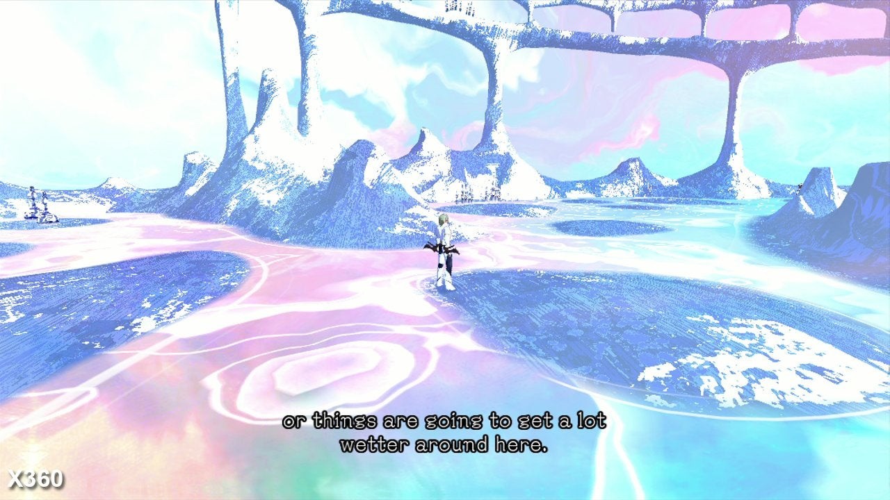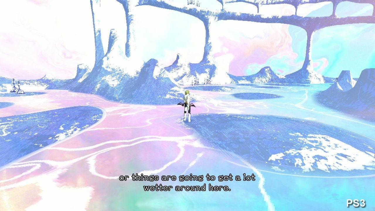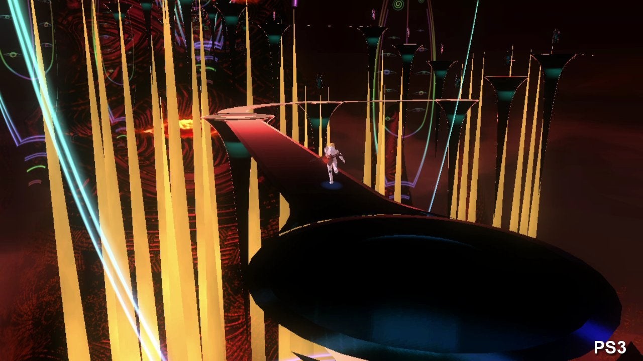 The game's unique, kaleidoscopic visual style owes itself to an animation technique called texture substitution, whereby different textures are revealed exclusively through certain transparent surfaces in the geometry. For the most part, both consoles achieve parity: specular effects, bloom and lighting models are a match. However, the PS3 is let down somewhat by its use of lower resolution animated textures, with pixellation especially evident in the rippling effect in puddles during the Arctic sections, and the edges of the rolling clouds in a later platforming level.