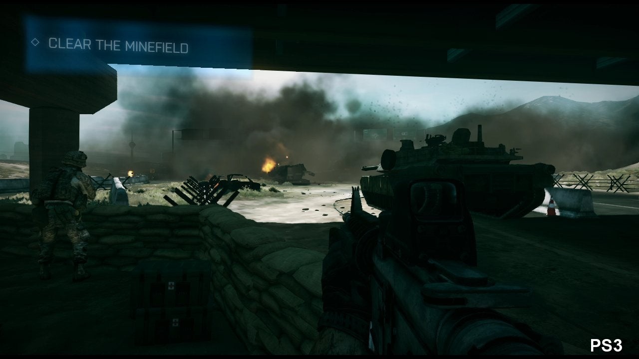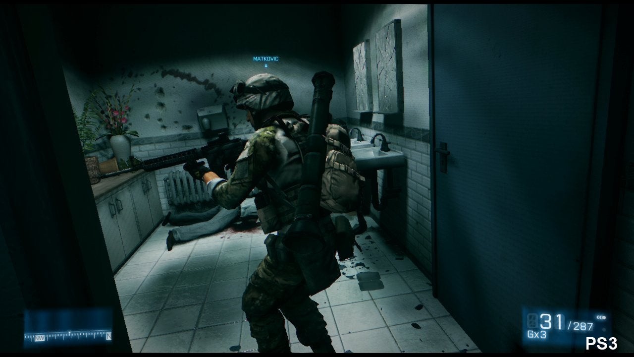 In this article, we'll be concentrating mostly on the console versions of the game, and factoring in the PC game more as a reference. Bearing in mind everything we've seen of the computer version, it's no surprise that a maxed out PC experience is light-years ahead of what we see on console - far more so in terms of the multiplayer game (as you'll see, the campaign is remarkably close). Regardless, the computer version of Battlefield 3 is so important that we'll be looking at it in a lot more depth in a separate article. With regards the Xbox 360 and PlayStation 3 comparisons, let's commence the proceedings with the requisite head-to-head video, backed up by an enormous, bulging, 66-shot Battlefield 3 triple-format Face-Off gallery.