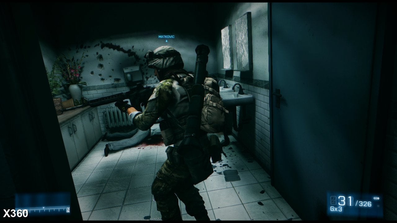 DICE has given several presentations about its new Frostbite 2 technology, but the great majority of them have concentrated on its PlayStation 3 achievements, such as deferred shading techniques on SPU. The singular lack of focus on the Xbox 360 may have been cause for concern, but looking at the final versions of Battlefield 3, to the casual eye the two games are essentially interchangeable. Both of them render at a native 1280x704 resolution, letterboxed gently top and bottom. The showpiece lighting is a match in almost all situations, detail levels and LODs seem to be almost identical.