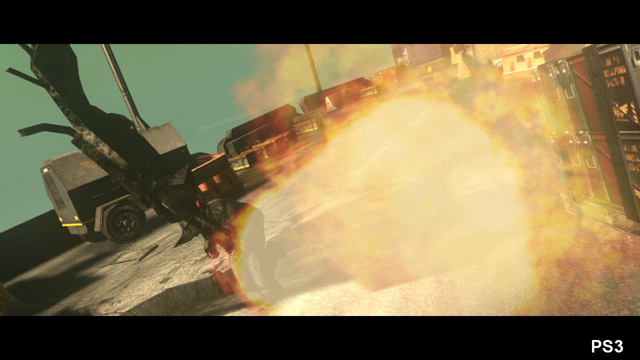 Of course, both formats can hold their 30FPS promise while indoors during infiltration missions, or even in narrow street areas with plenty of large, colluding objects to hide distant geometry. Boss fights in science facilities don't pose a problem either, but picking a fight with a Blackwatch post while swooping and diving overhead is a sure-fire way to bring that frame-rate down again. It's often the overload of alpha effects from bazooka fire that proves a bit of a struggle for both sides of the hardware fence, and can be exacerbated by the hordes of pedestrians flitting about the area.