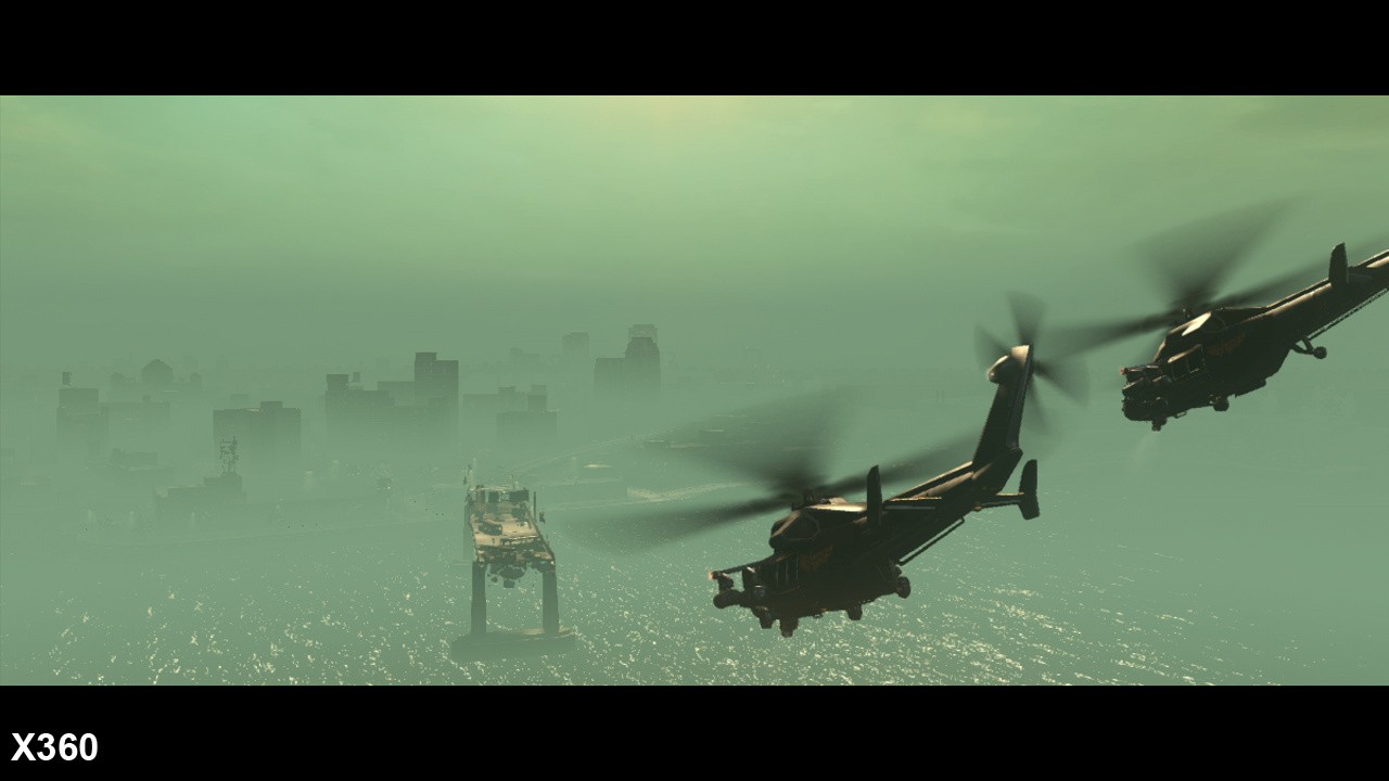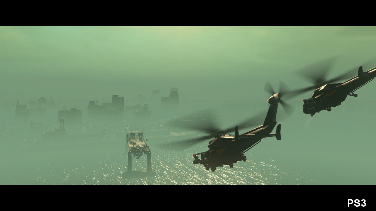 Otherwise, the lighting, shadowing (including the newly worked SSAO), and depth of field effects hold firm the visual style Radical is shooting for, and are ostensibly a match on both consoles. It's only minor variations in camera and character positioning that affect the pairing of some screenshots. The in-game cut-scenes are crudely utilised for simple "go here, do this" set-ups for the next mission - usually infiltration - but it's the video cinematics which ultimately end up pushing the narrative forward.