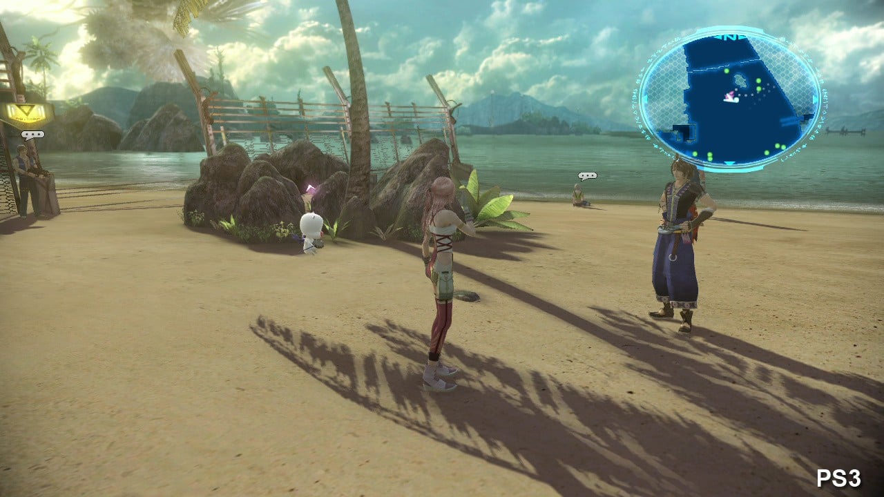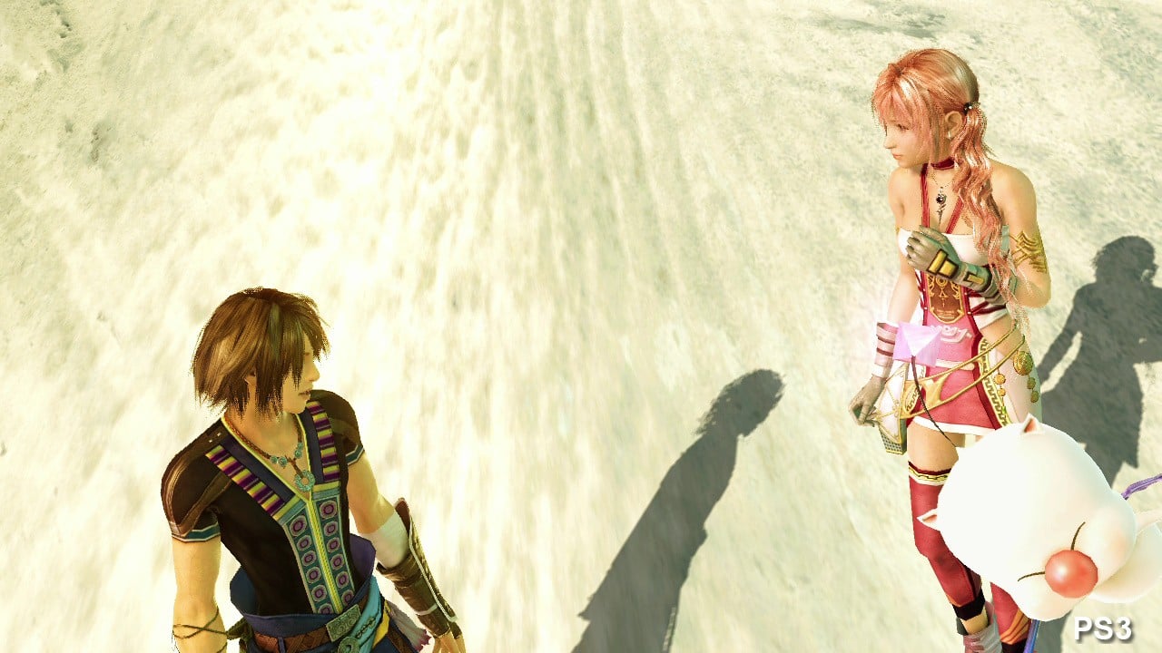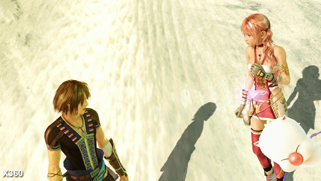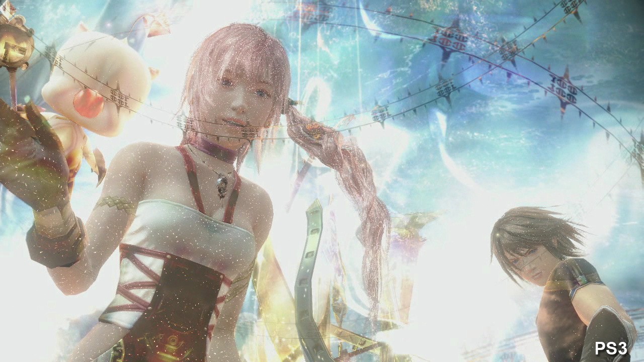 The causes for these drops seem to be mostly linked to multiple light sources and particle effects, as you can see in the scene where Noel and Serah are travelling to the Historia Crux for the first time, with lighting being cast from almost every angle. This also rings true during the "Prelude" section of the game with Lightning battling while riding on horseback, during which frames are dropped consistently whenever magic spells are cast by the enemy. Fortunately this whole sequence is a one-off in terms of placing a strain on either console during battle.